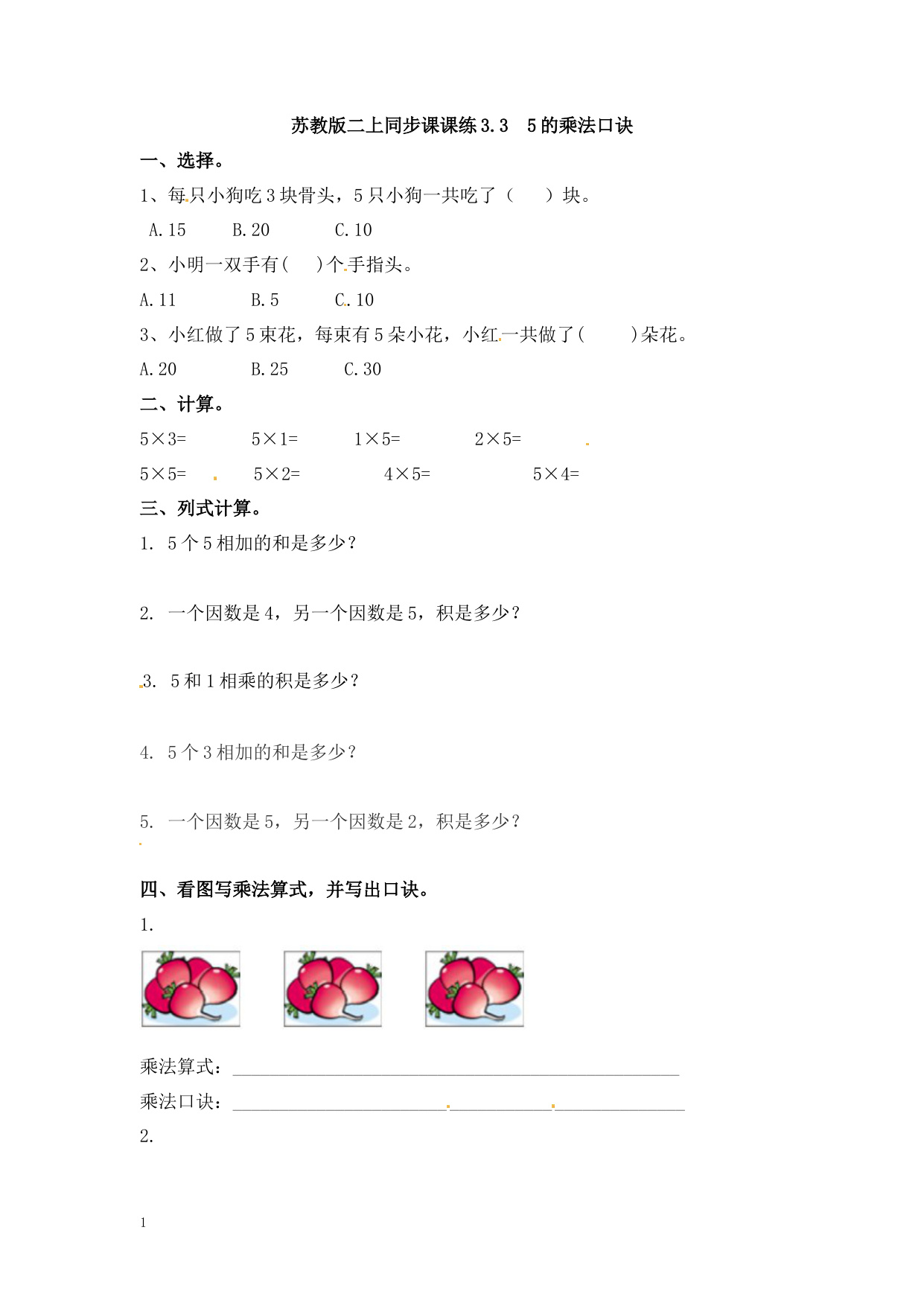 下一篇:二年级数学(上册)第三单元表内乘法课后练习题:4