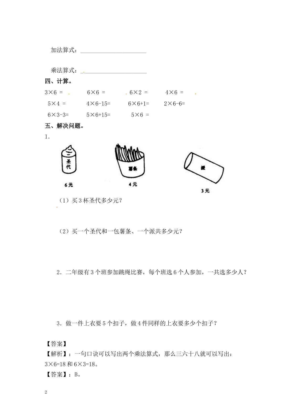 下一篇:二年级数学(上册)第四单元表内乘法课后练习题;2(苏教版)