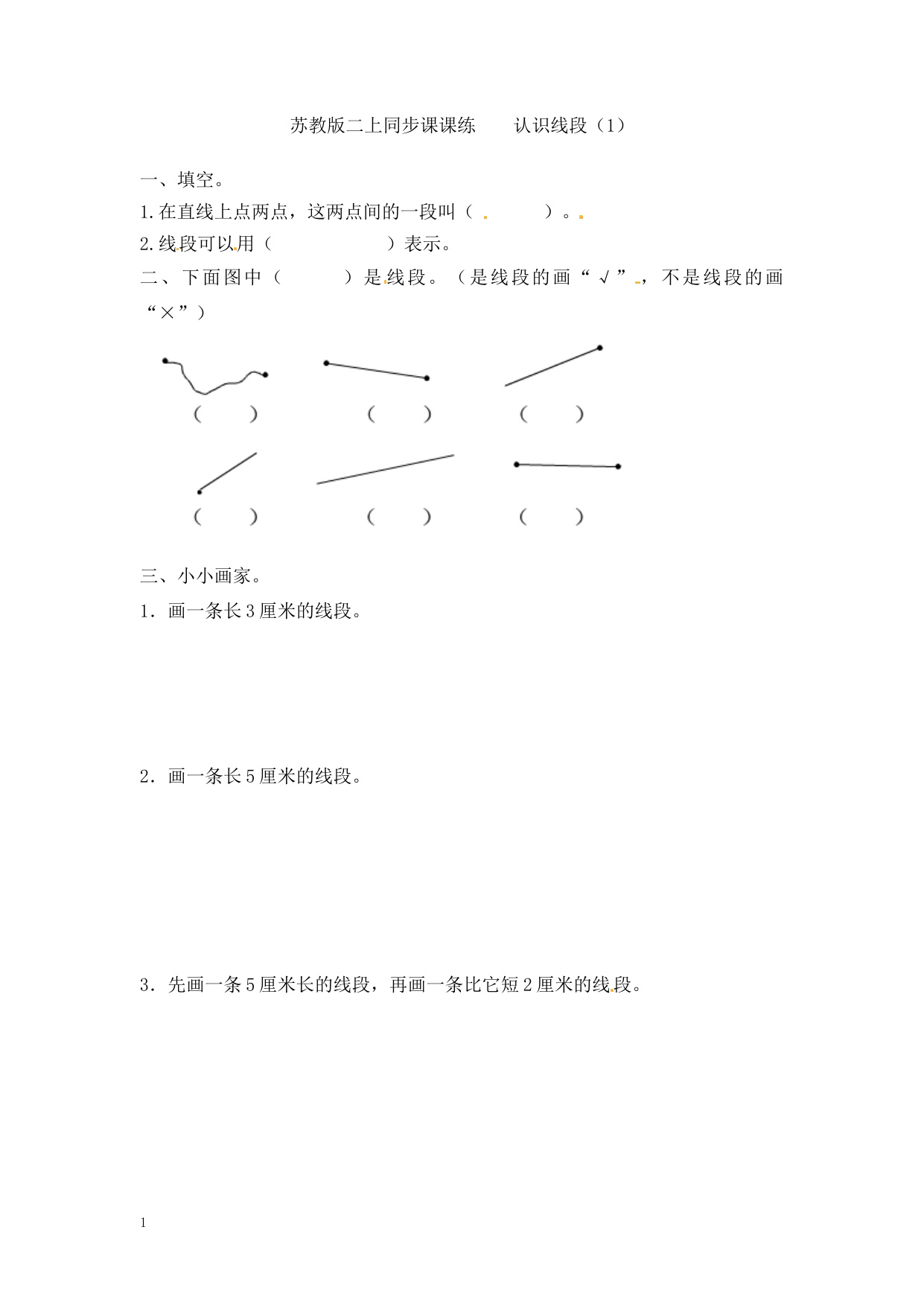 小学二年级上册-五单元(厘米和米)课时:1(苏教版)练习题+答案