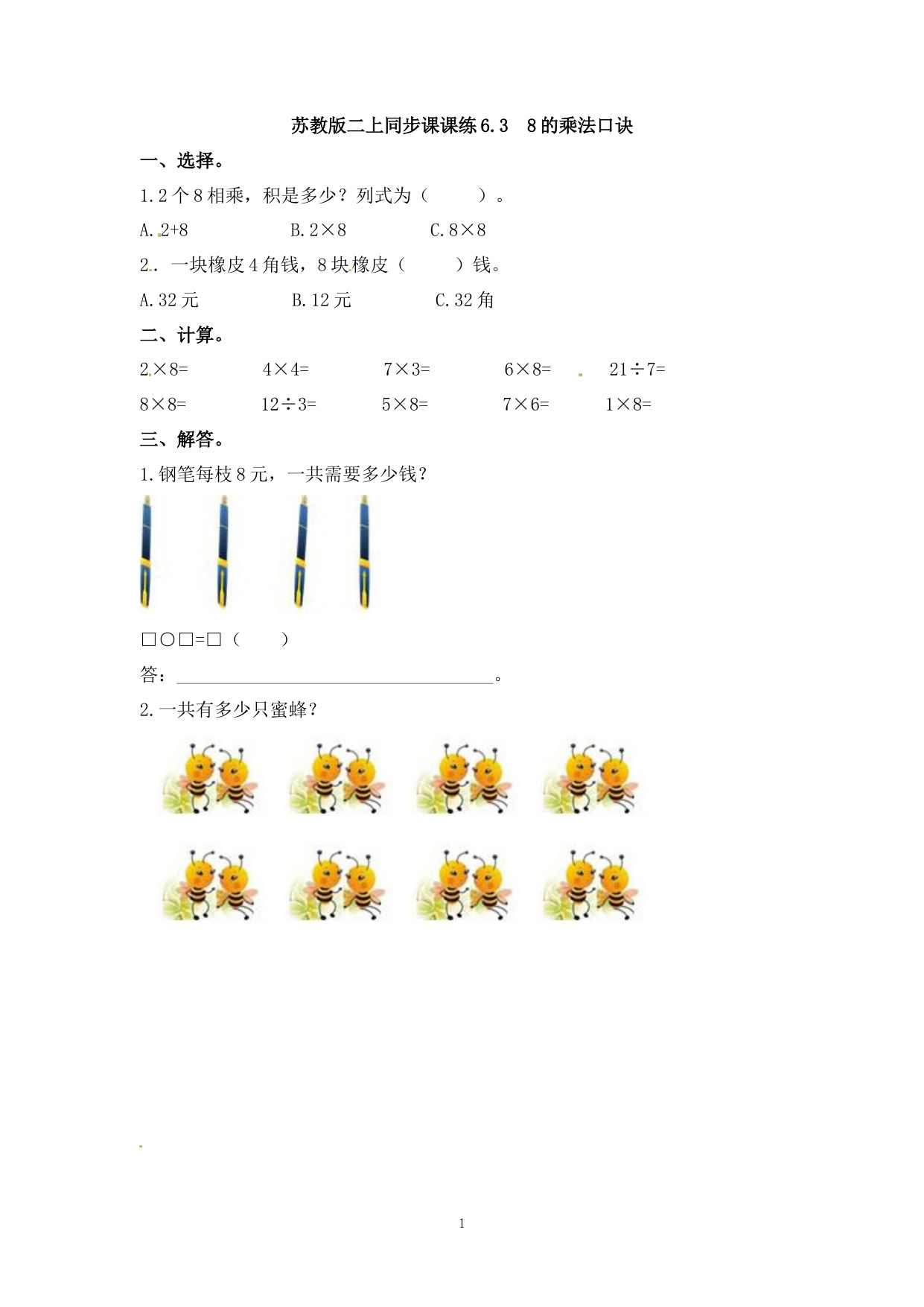 下一篇:小学二年级上册-六单元(表内乘法与除法二)课时:4(苏教版)练习题+答案