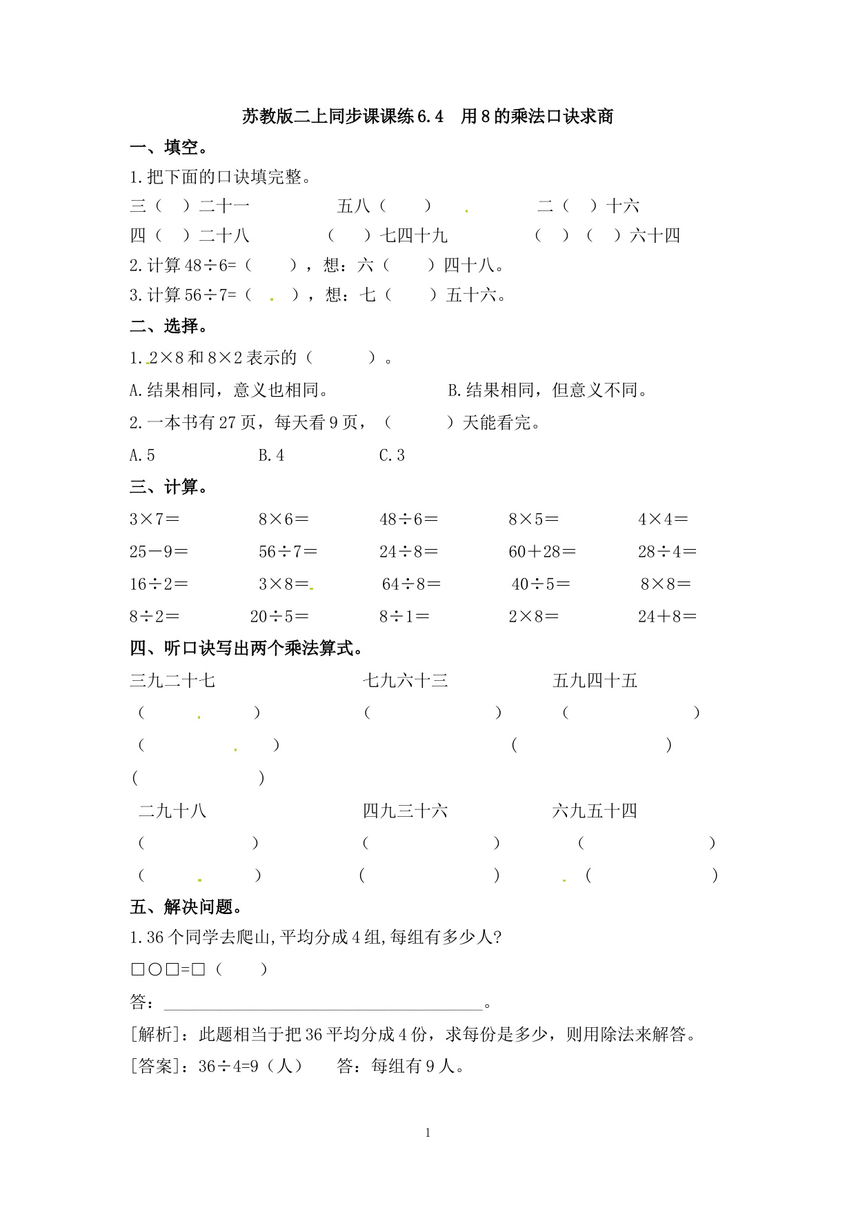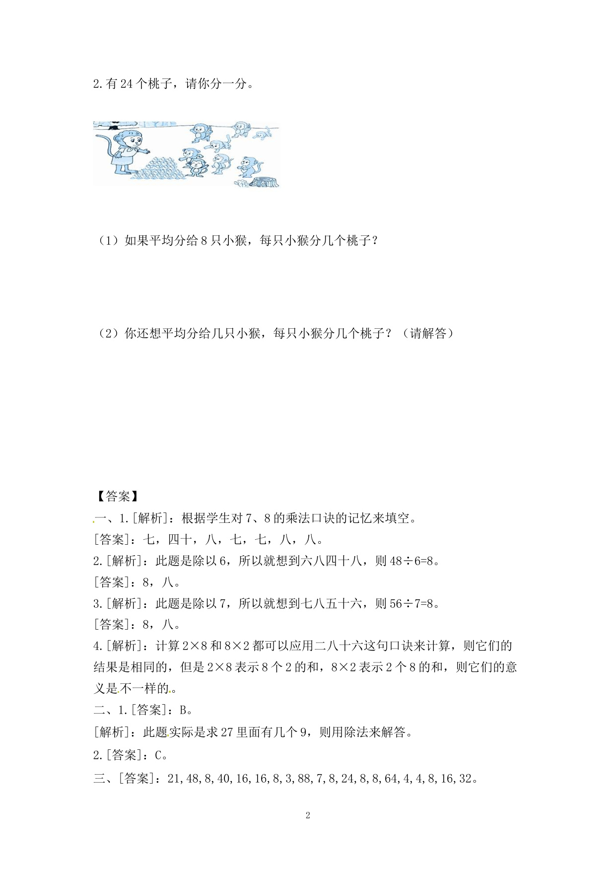 上一篇:小学二年级上册-六单元(表内乘法与除法二)课时:3(苏教版)练习题+答案