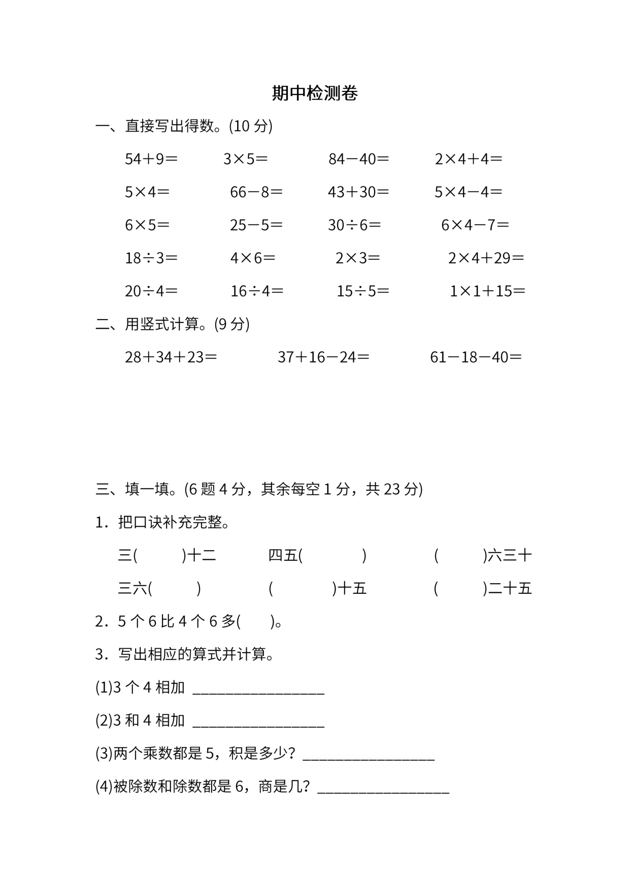 苏教版数学二年级(上册)期中考试测试卷试题(含答案) 资料为PDF格式,请下载后使用相应软件打开。