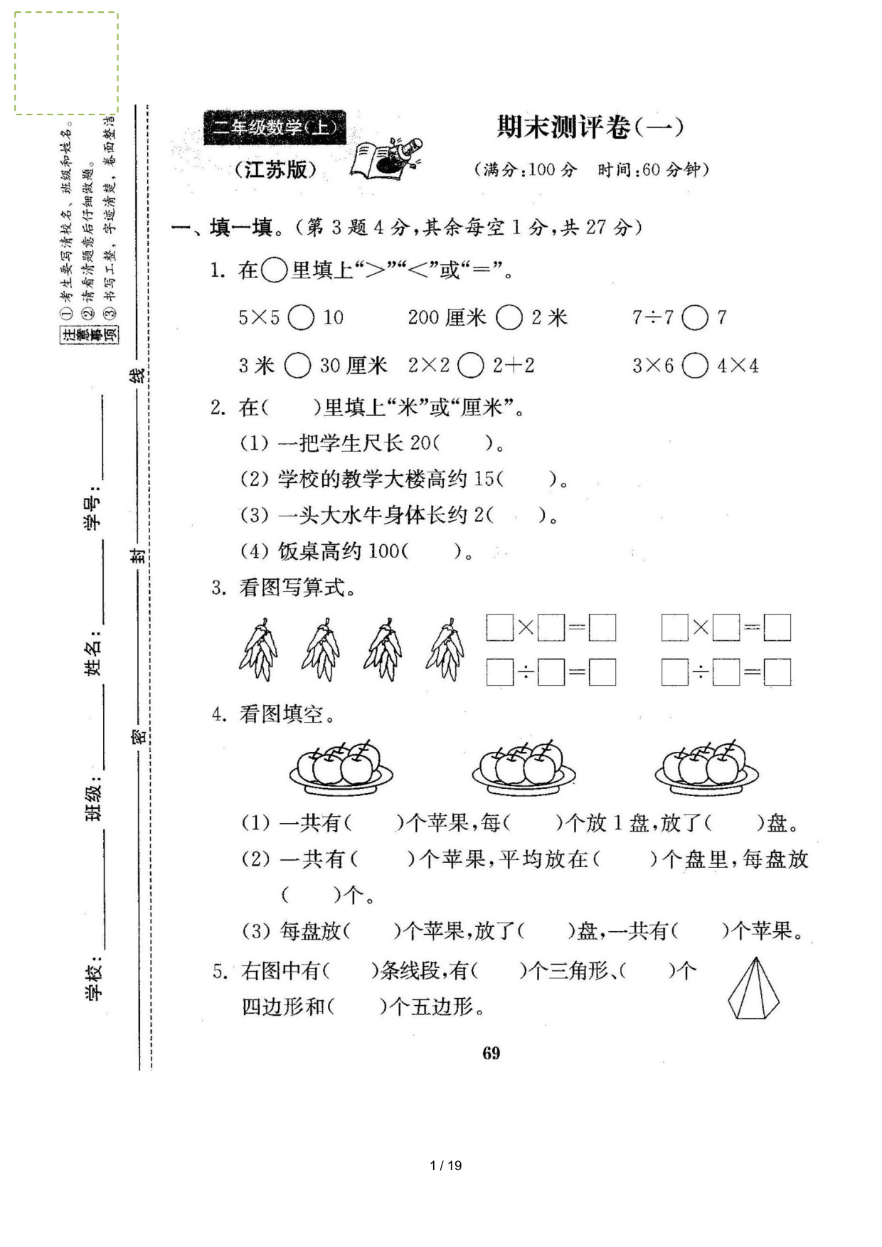 下一篇:苏教版数学二年级上学期期末测试卷1