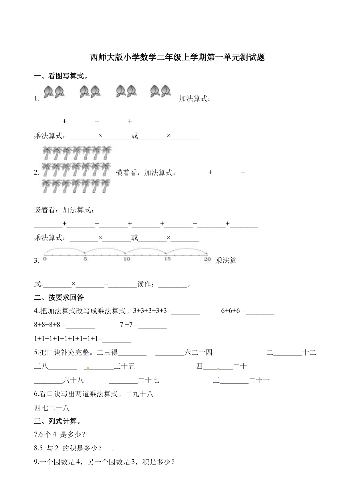 下一篇:小学二年级上学期上册-西师版数学第五单元检测