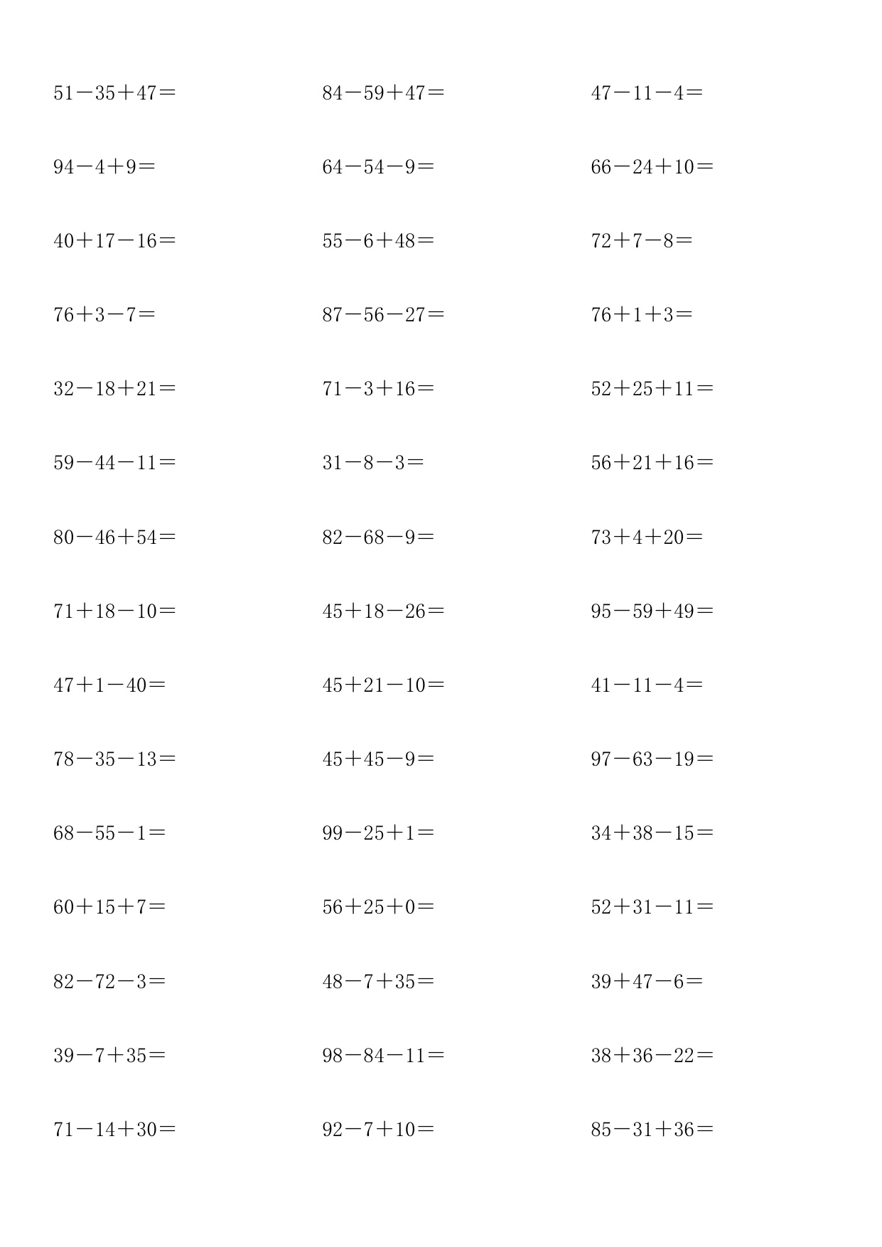 下一篇:二年级上册100以内加减进退位口算题卡