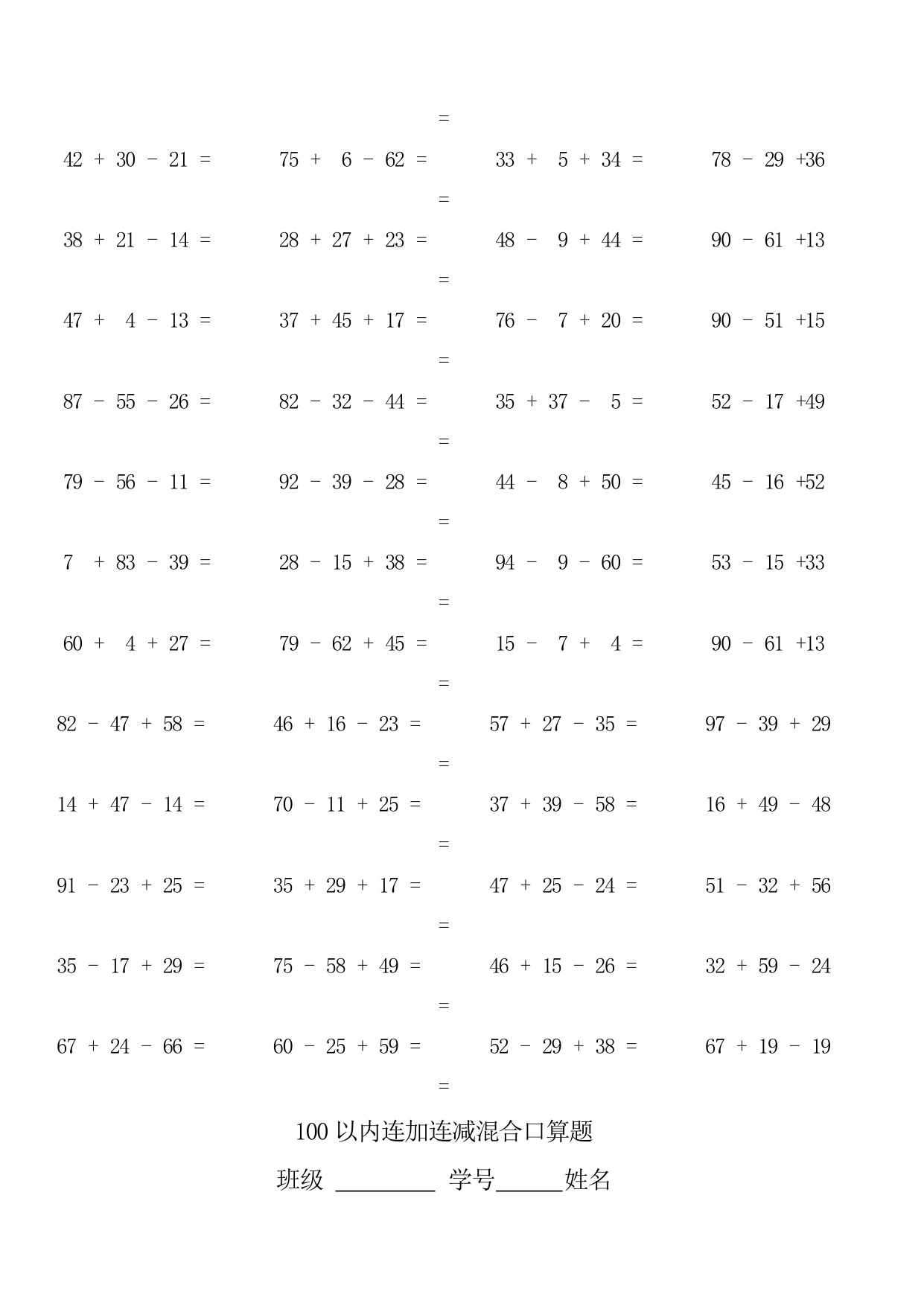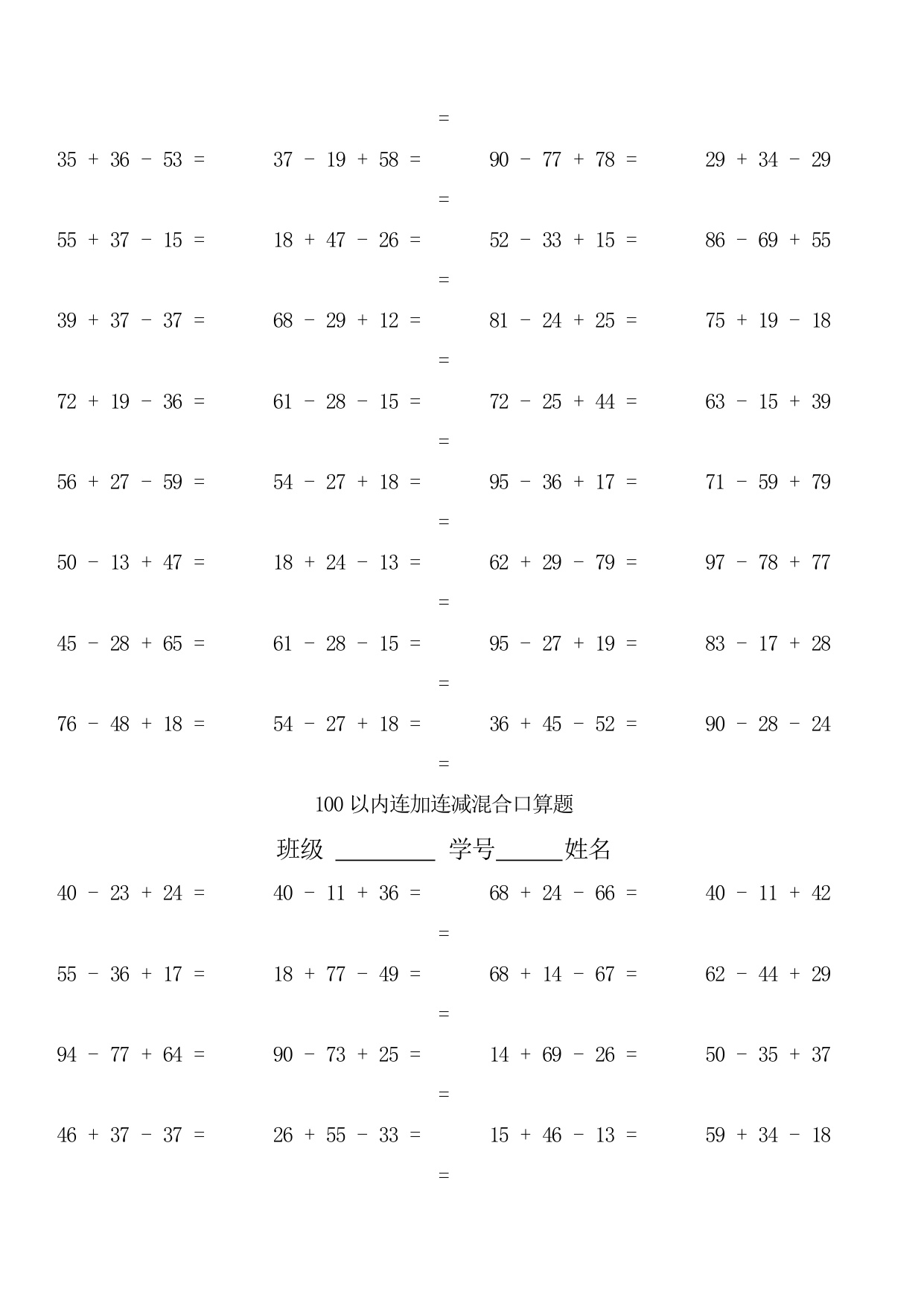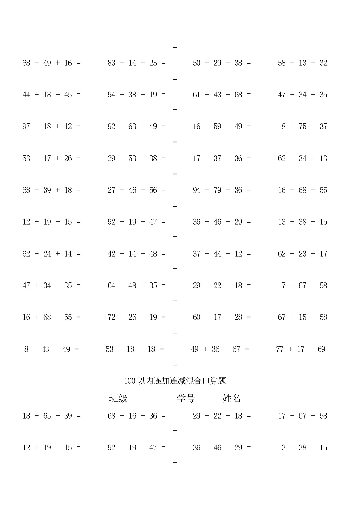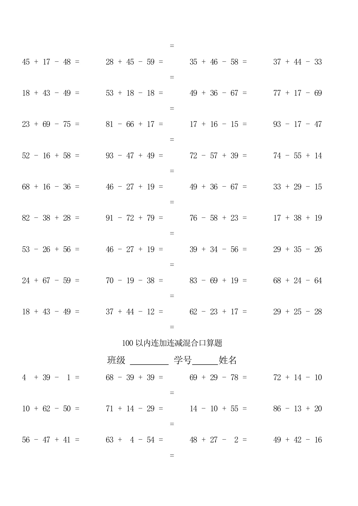 下一篇:二年级上册数学-100以内连加连减加减混合带括号的练习题