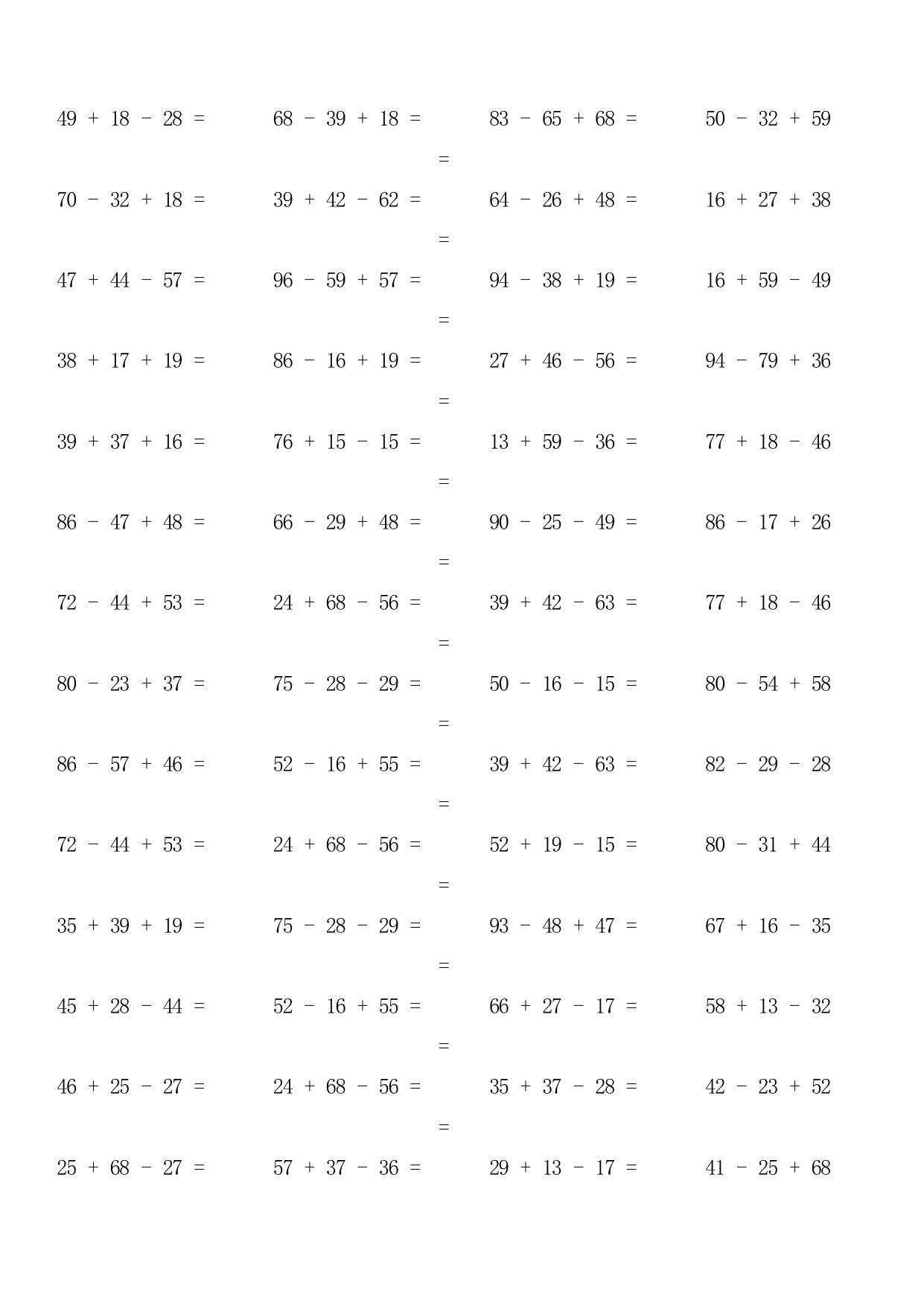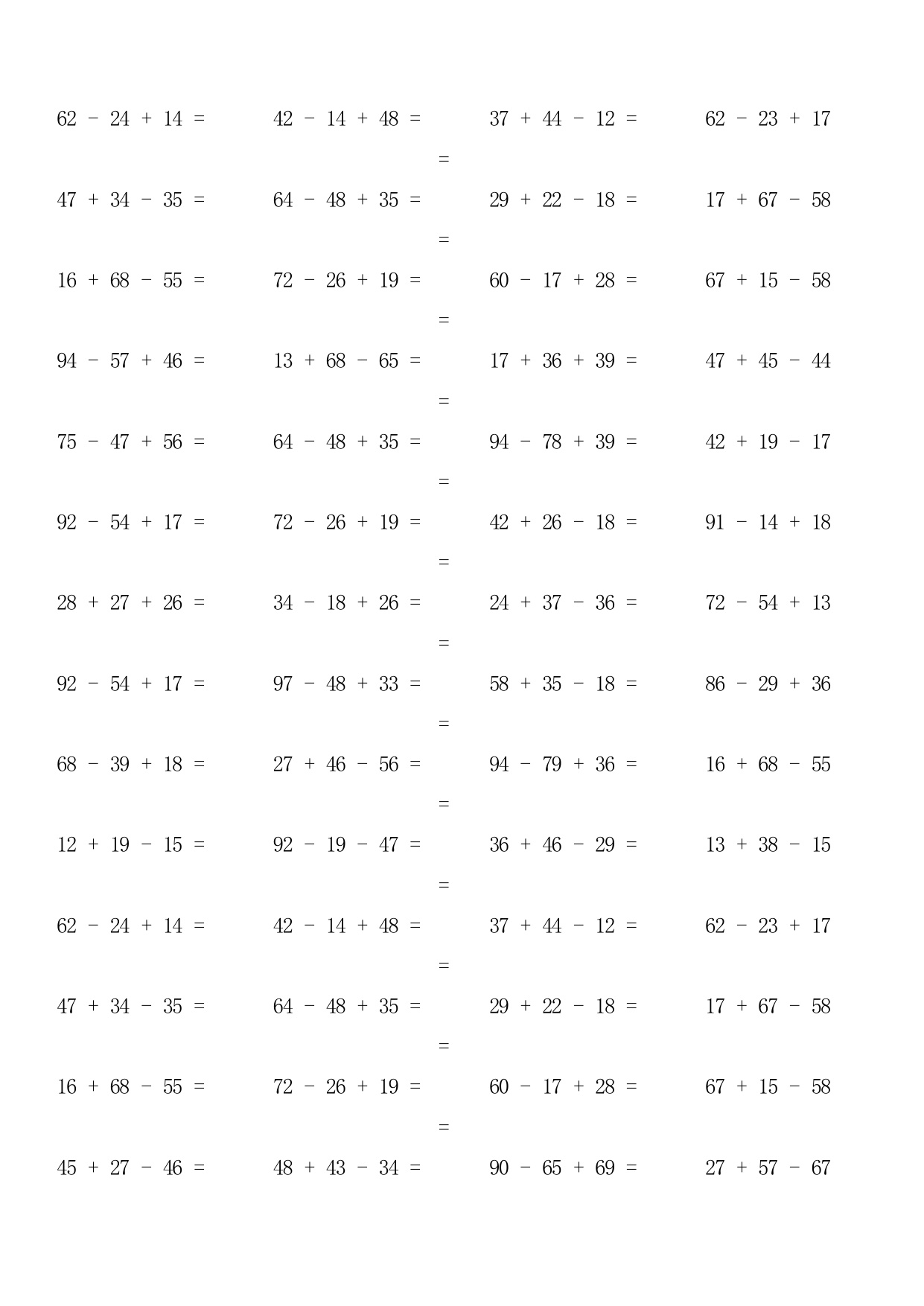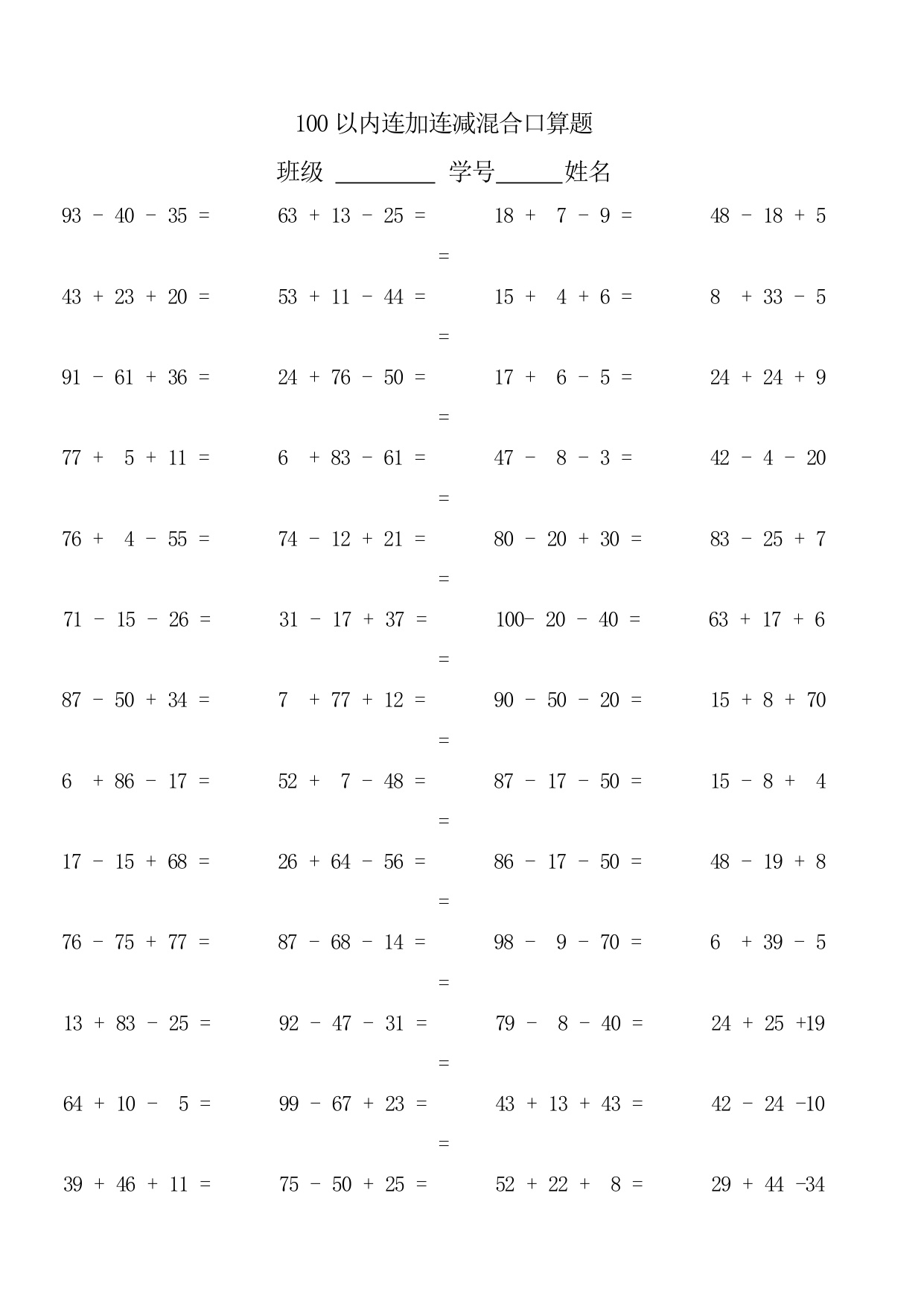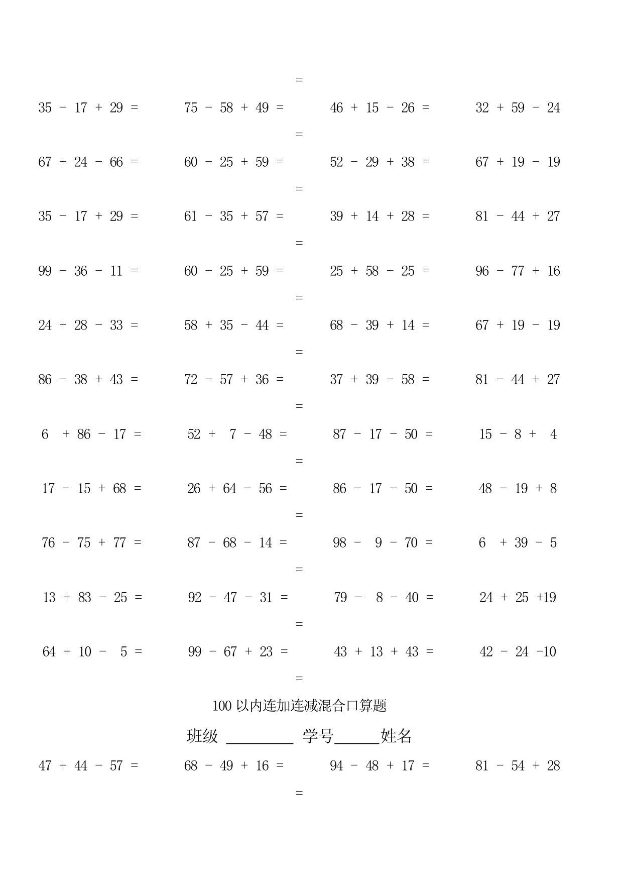 下一篇:二年级上册数学-100以内连加连减加减混合带括号的练习题