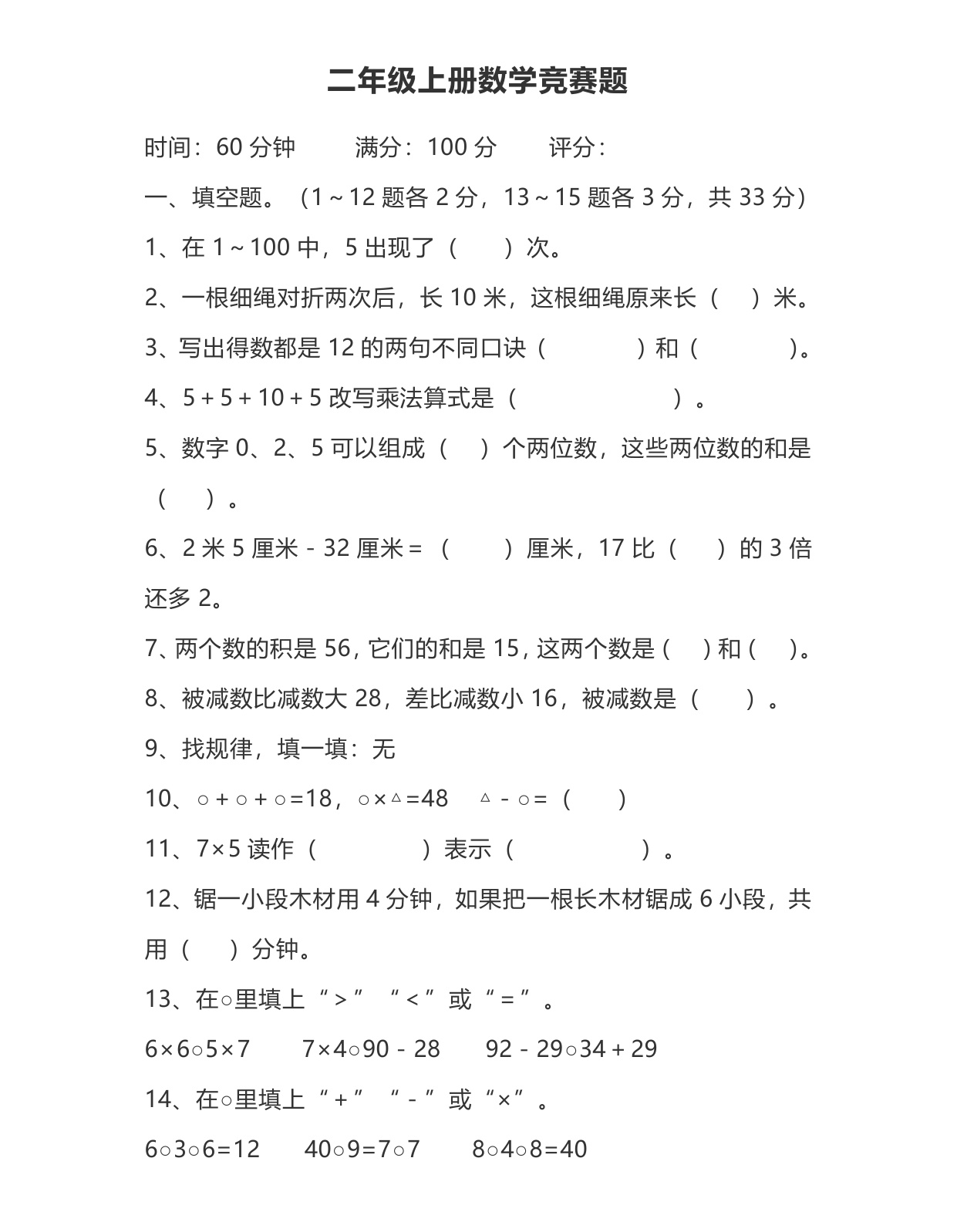 下一篇:二年级上册数学表内乘法口算练习题(10套)
