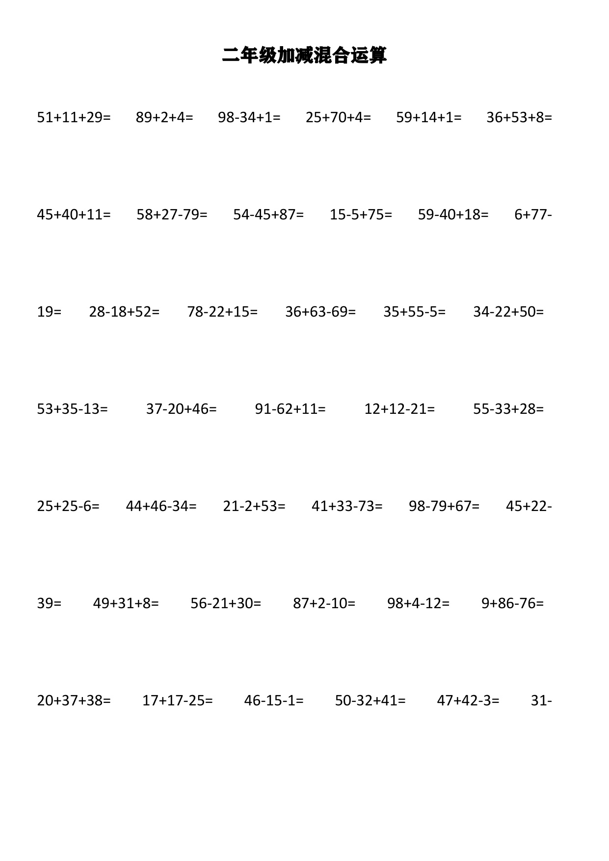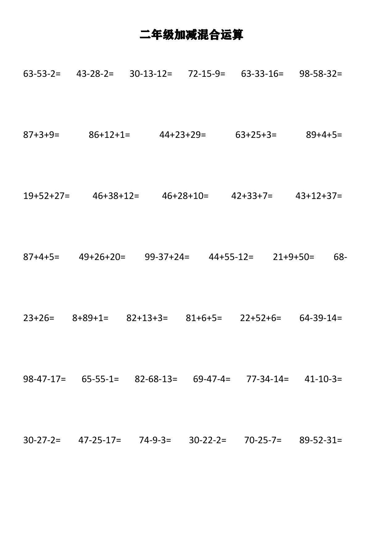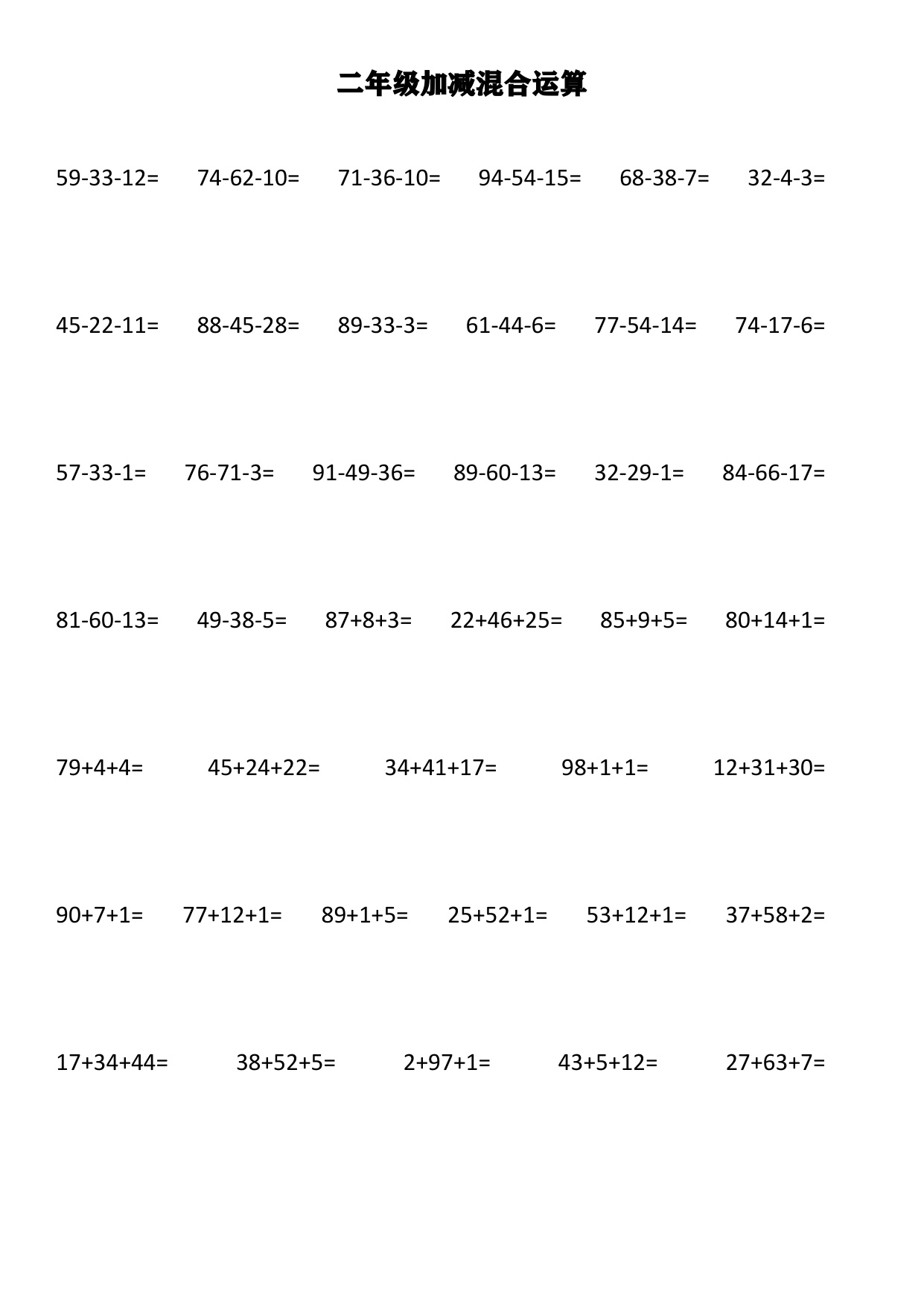 上一篇:小学二年级上册上学期-数学加减混合竖式计算1
