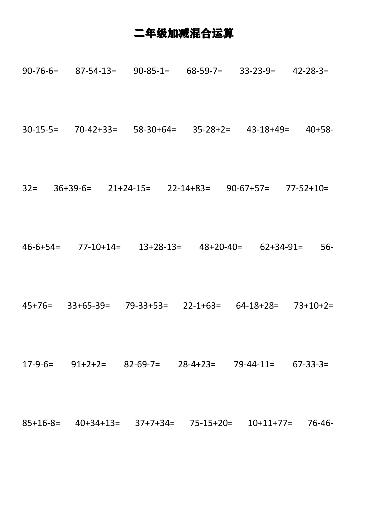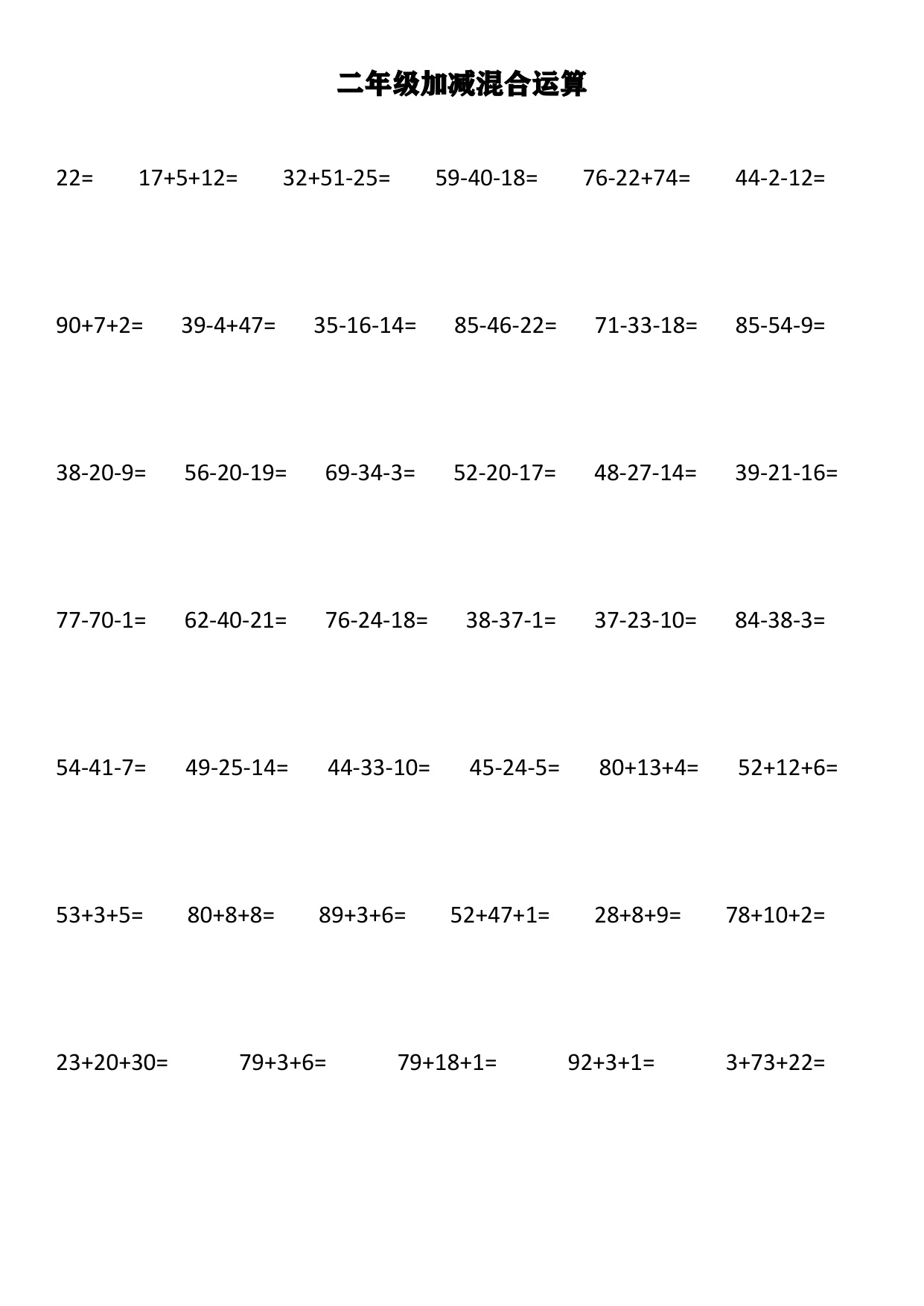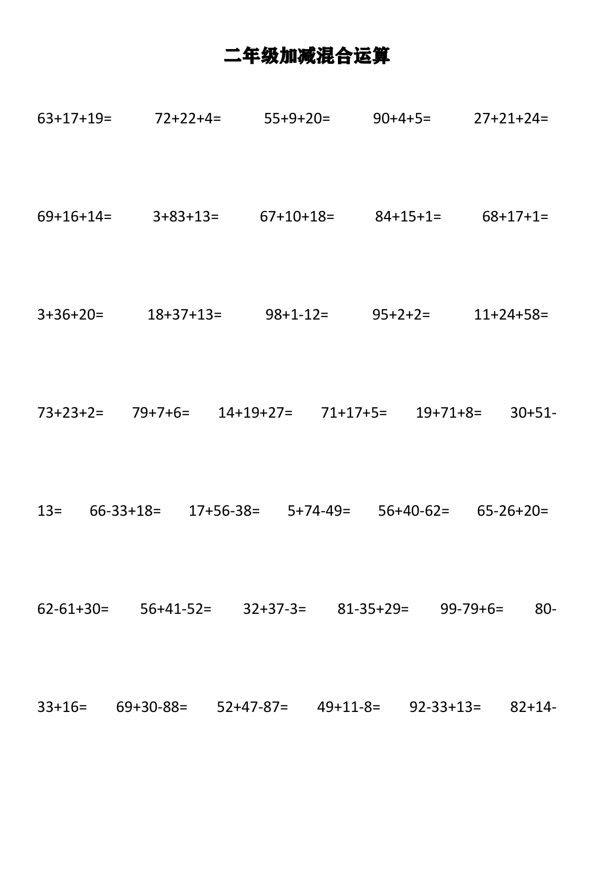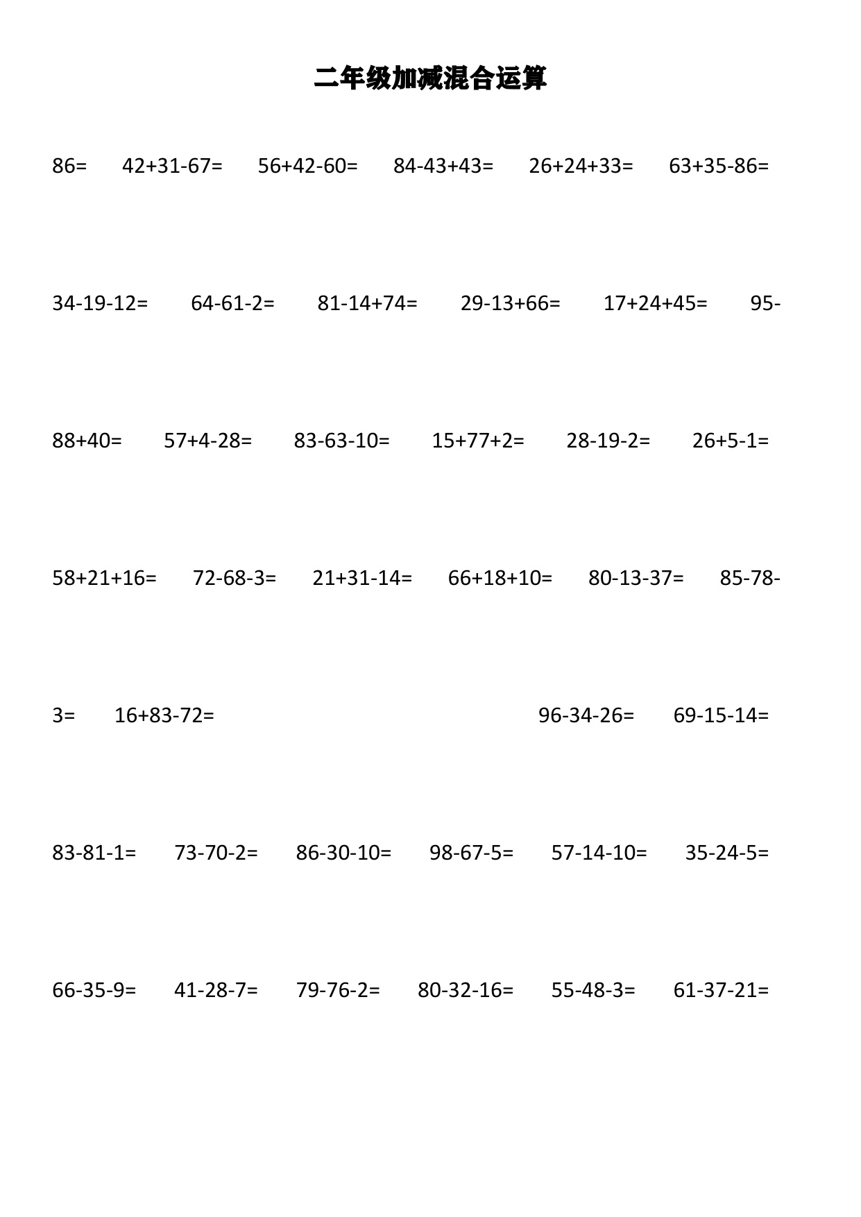 上一篇:小学二年级上册上学期-数学加减混合竖式计算1
