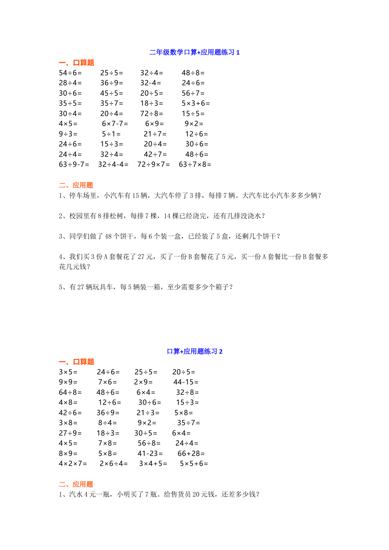 下一篇:小学二年级上册上学期-数学口算能力快速提升训练①