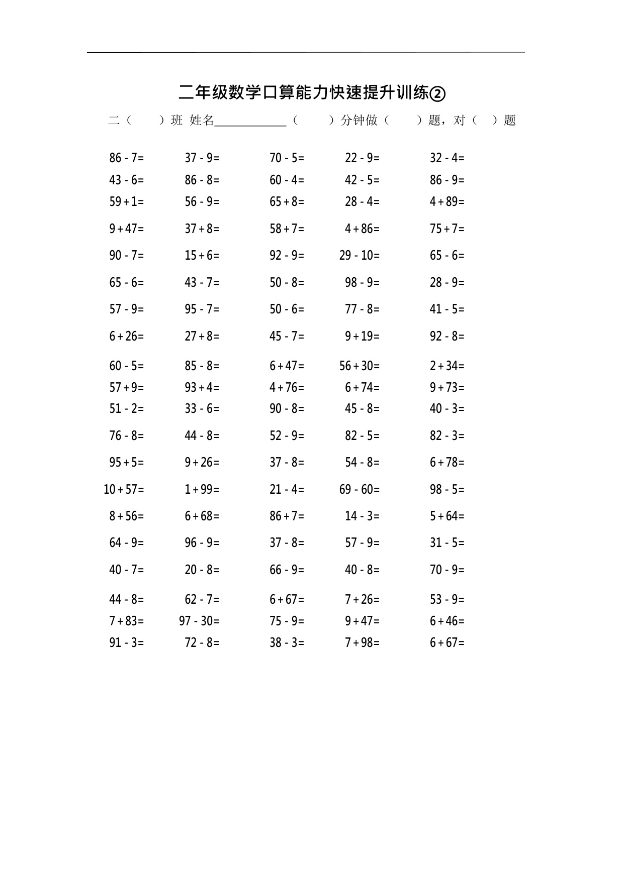下一篇:小学二年级上册上学期-数学口算能力快速提升训练③