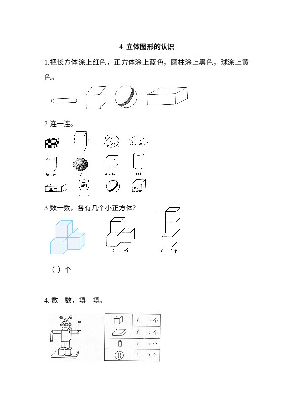 4 立体图形的认识-一年级上第四单元认识图形的课时练 资料为Word格式,请下载后使用相应软件打开。