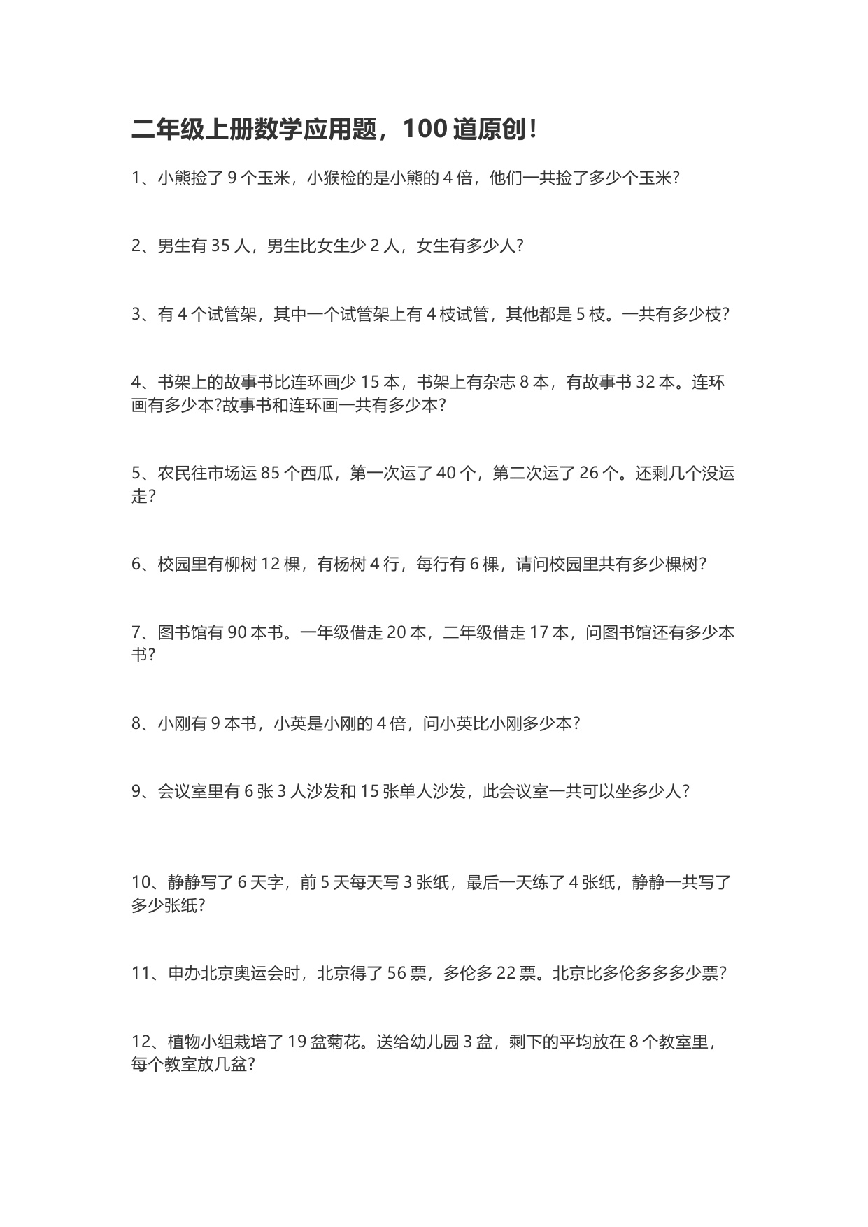 下一篇:小学二年级上册上学期-数学应用题专项训练共42页