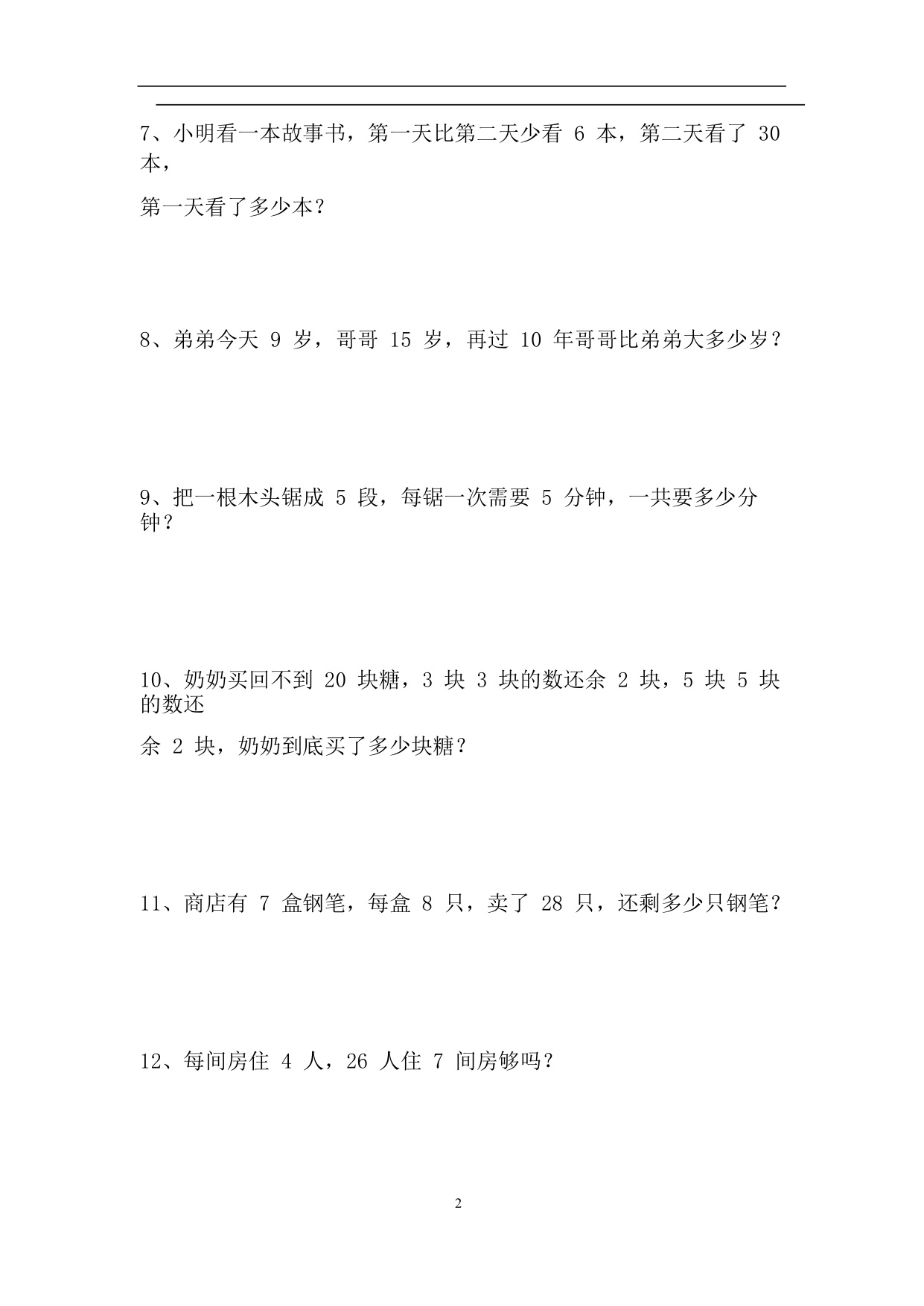 下一篇:小学二年级上册上学期-数学解决问题专项练习