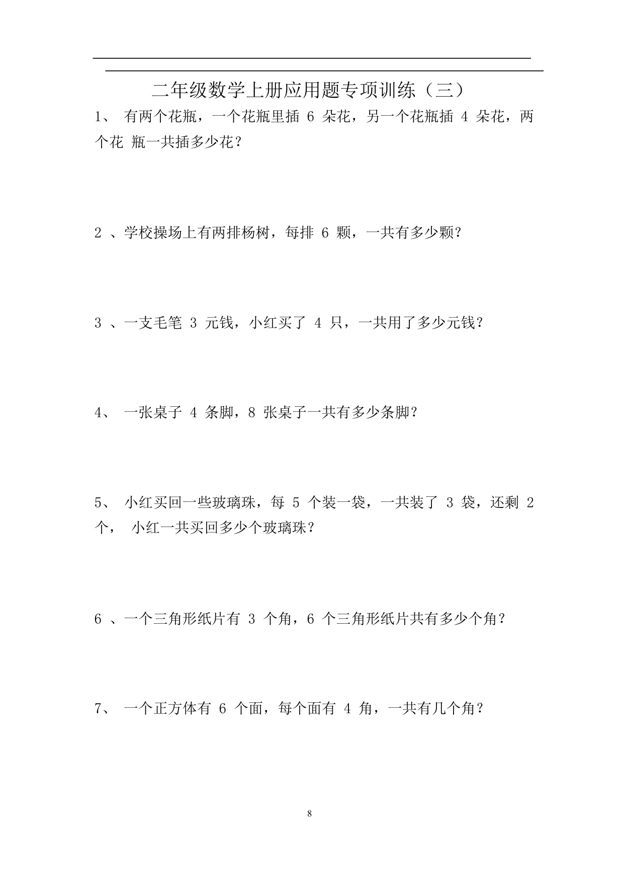 上一篇:小学二年级上册上学期-数学应用题专项