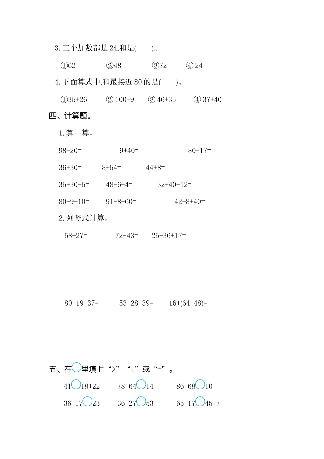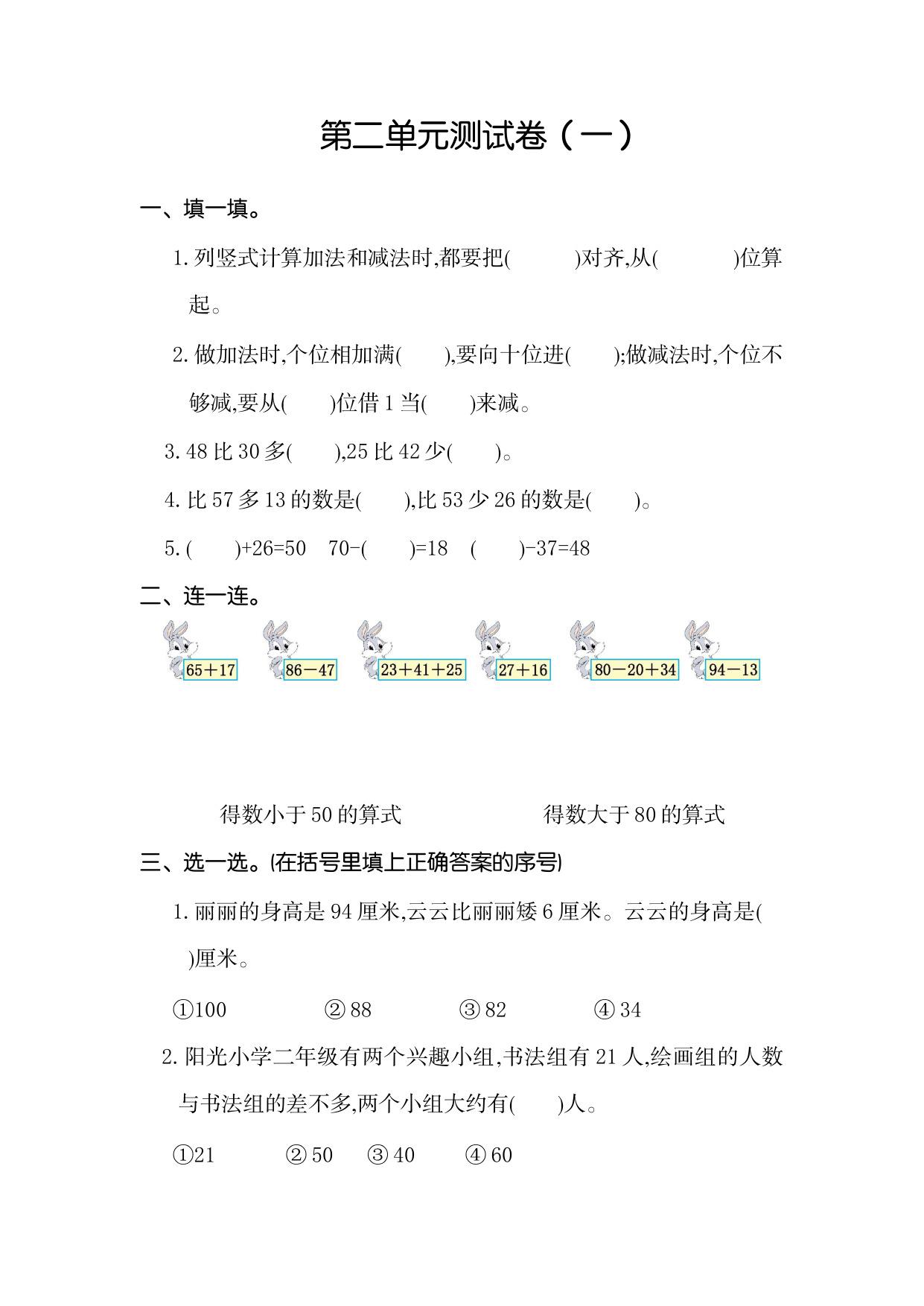 下一篇:二年级上册数学- 100以内的加法和减法-第二单元测试卷(二)