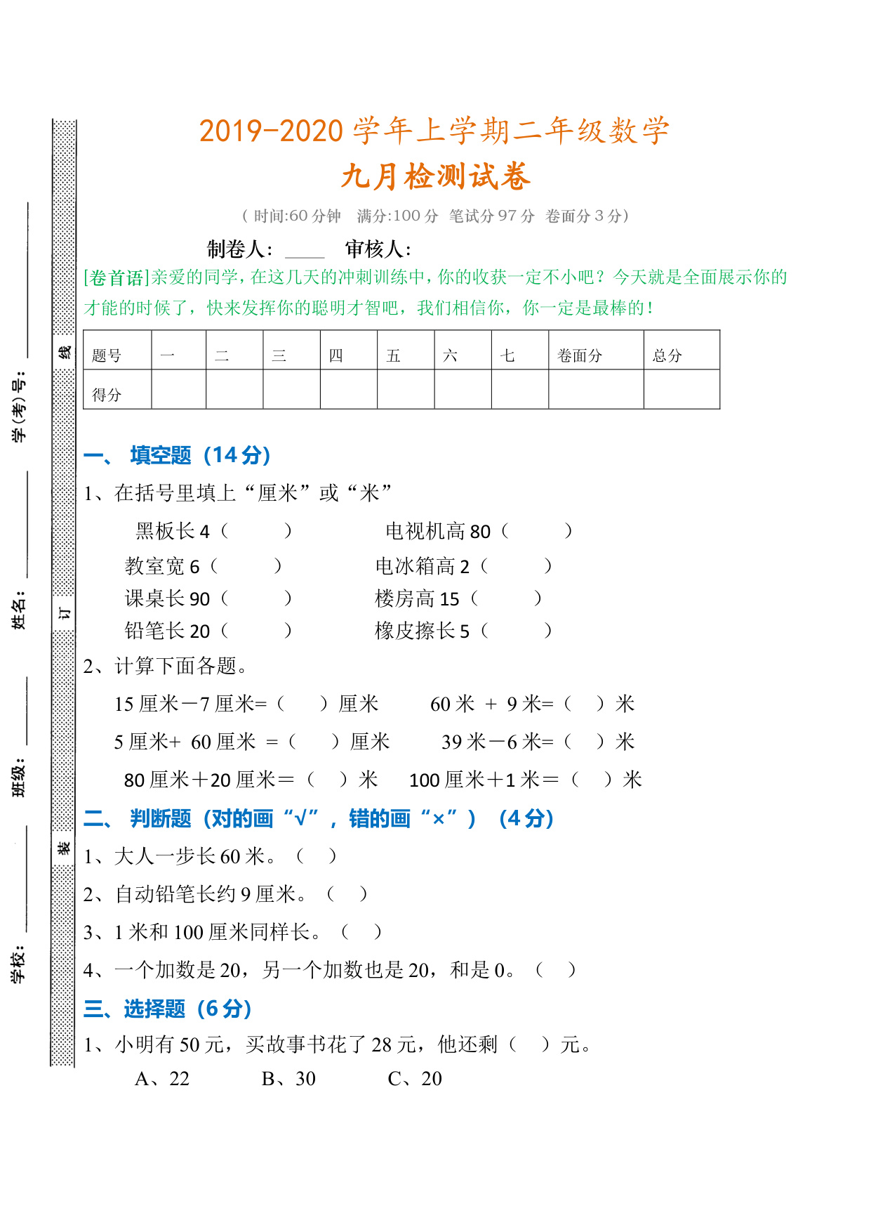 上一篇:二年级上册数学-长度单位练习题-第一单元测试卷(二)