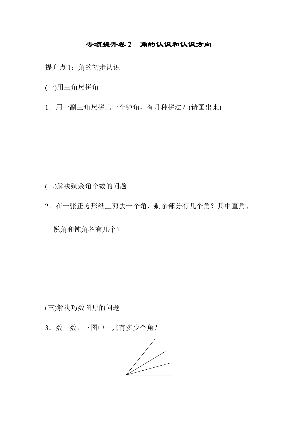 青岛版二上数学专项练习-专项提升卷2 角的认识和认识方向