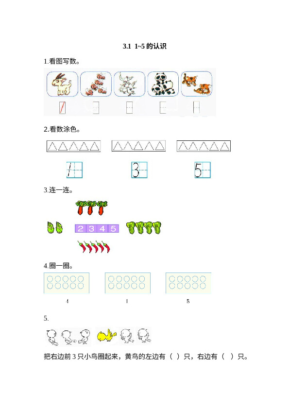 下一篇:3-1 认识1~5-一年级上册数学第三单元1-5的认识课时练