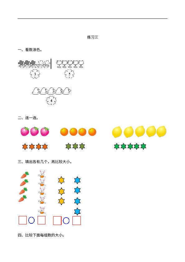 3-3 练习三-一年级上册数学第三单元1-5的认识课时练 资料为Word格式,请下载后使用相应软件打开。