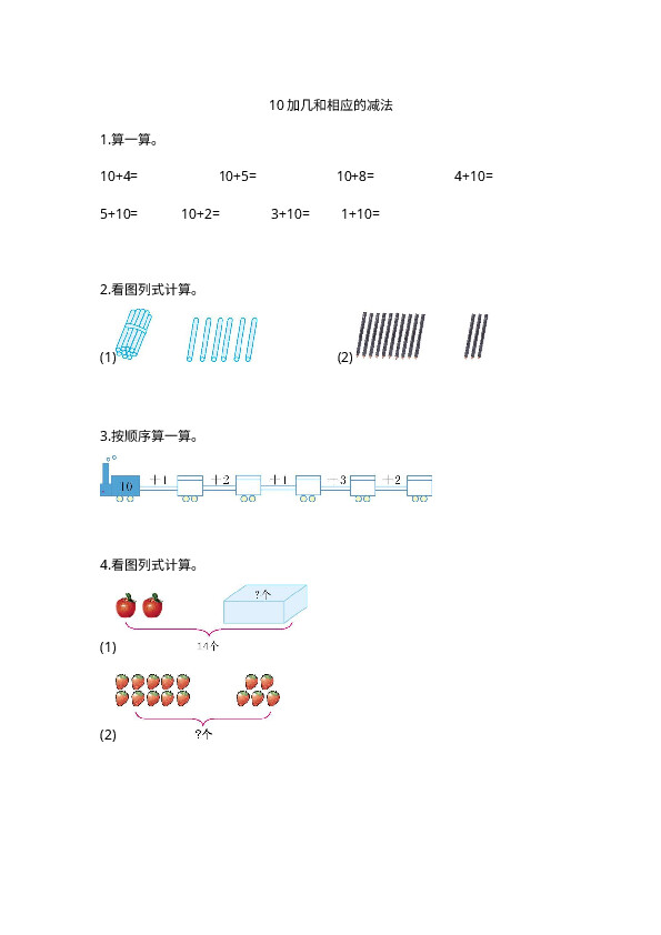 6-4 10加几和相应的减法-一年级上第六单元练习
