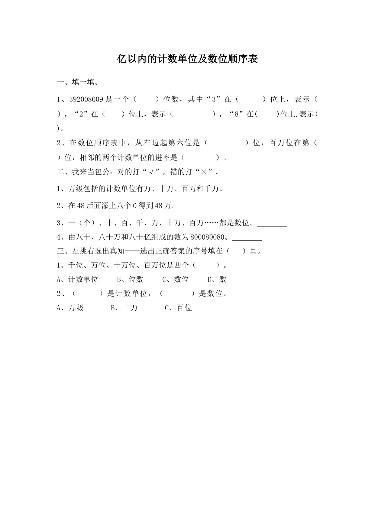 数学人教版四上课时练1-1 亿以内的计数单位及数位顺序表