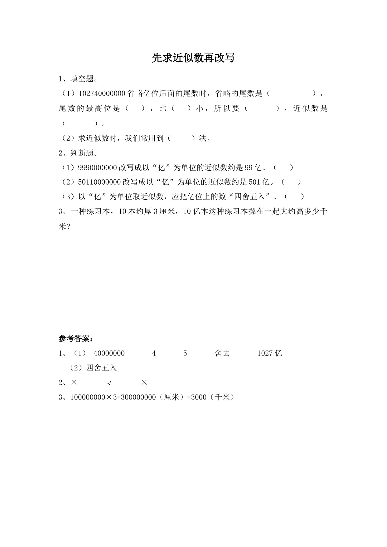 下一篇:数学人教版四上课时练1-15 练习三