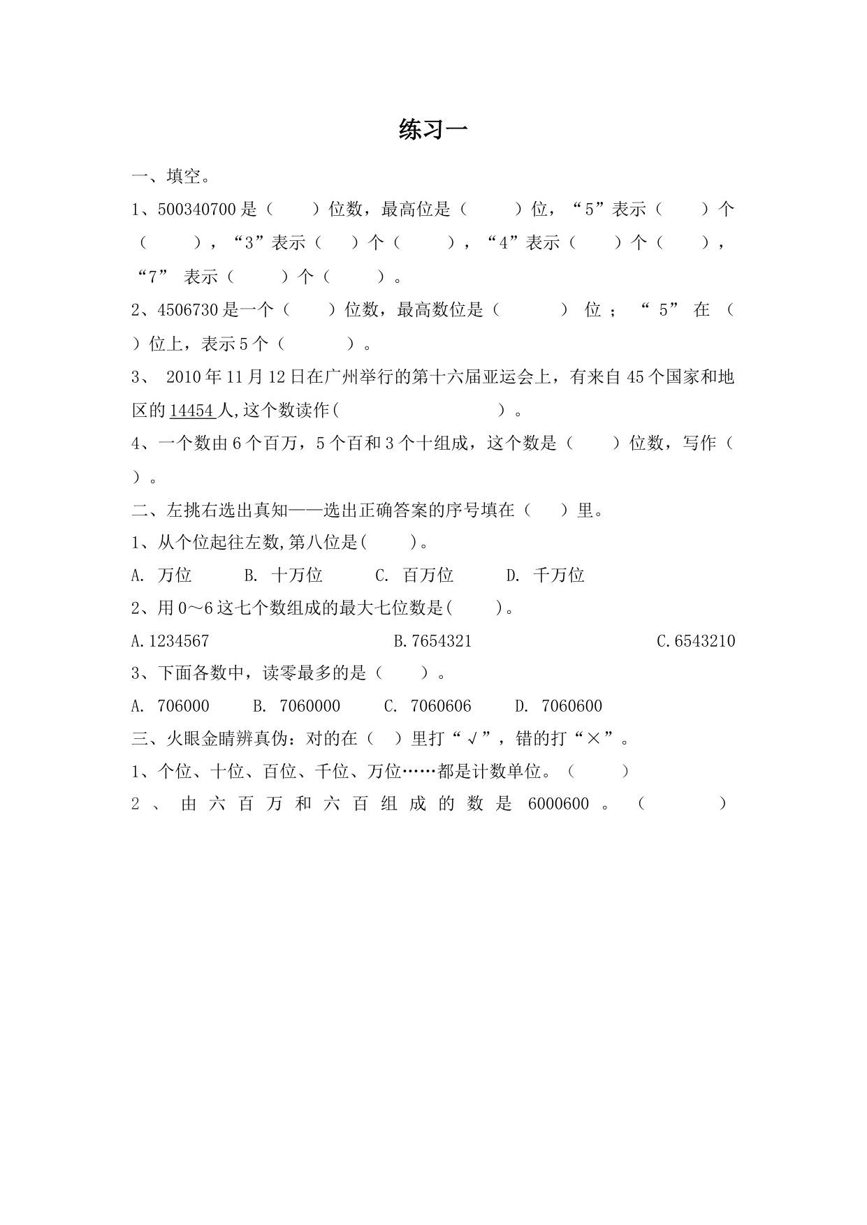 上一篇:数学人教版四上课时练1-4 亿以内数的改写