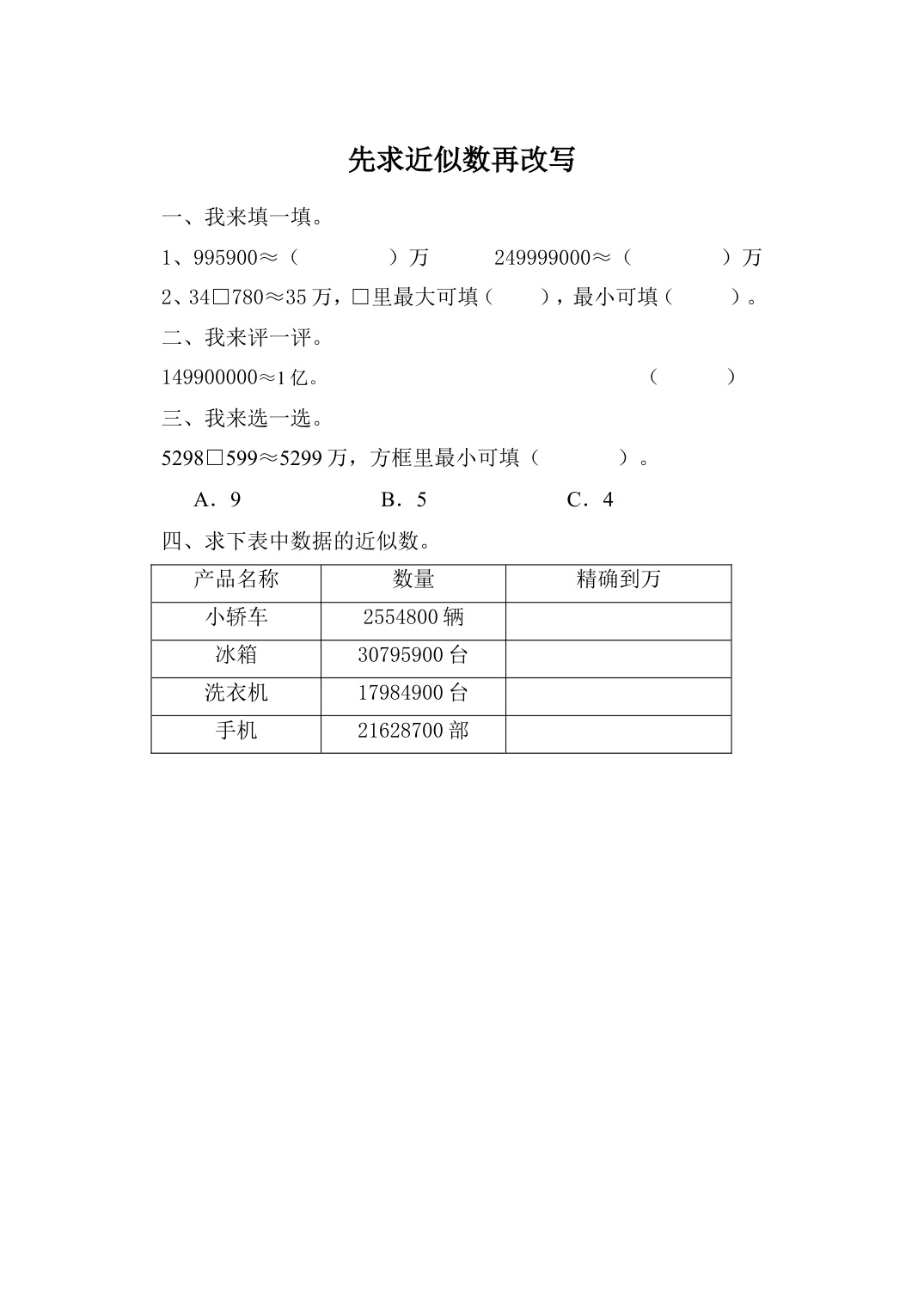 上一篇:数学人教版四上课时练1-6 将整万数改写成用“万”作单位的数