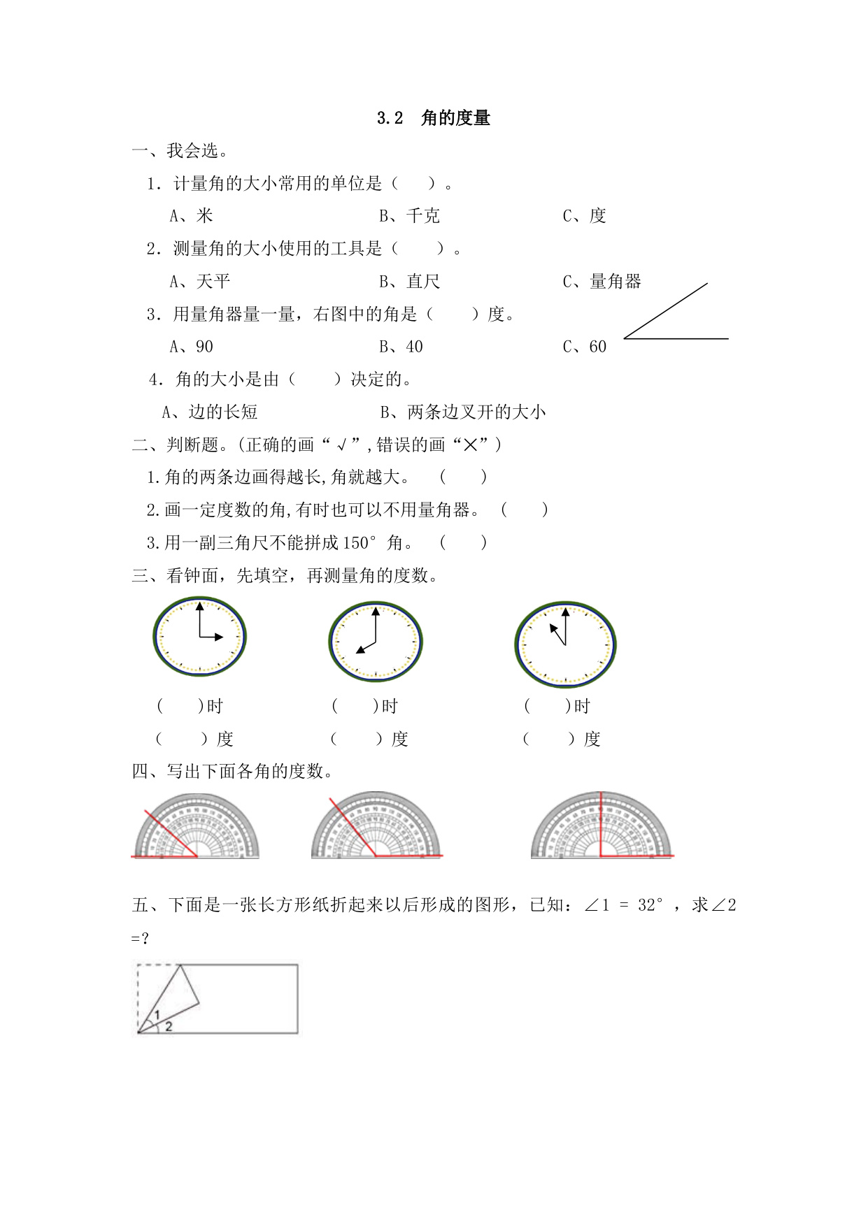 下一篇:数学人教版四上课时练3-3 角的分类