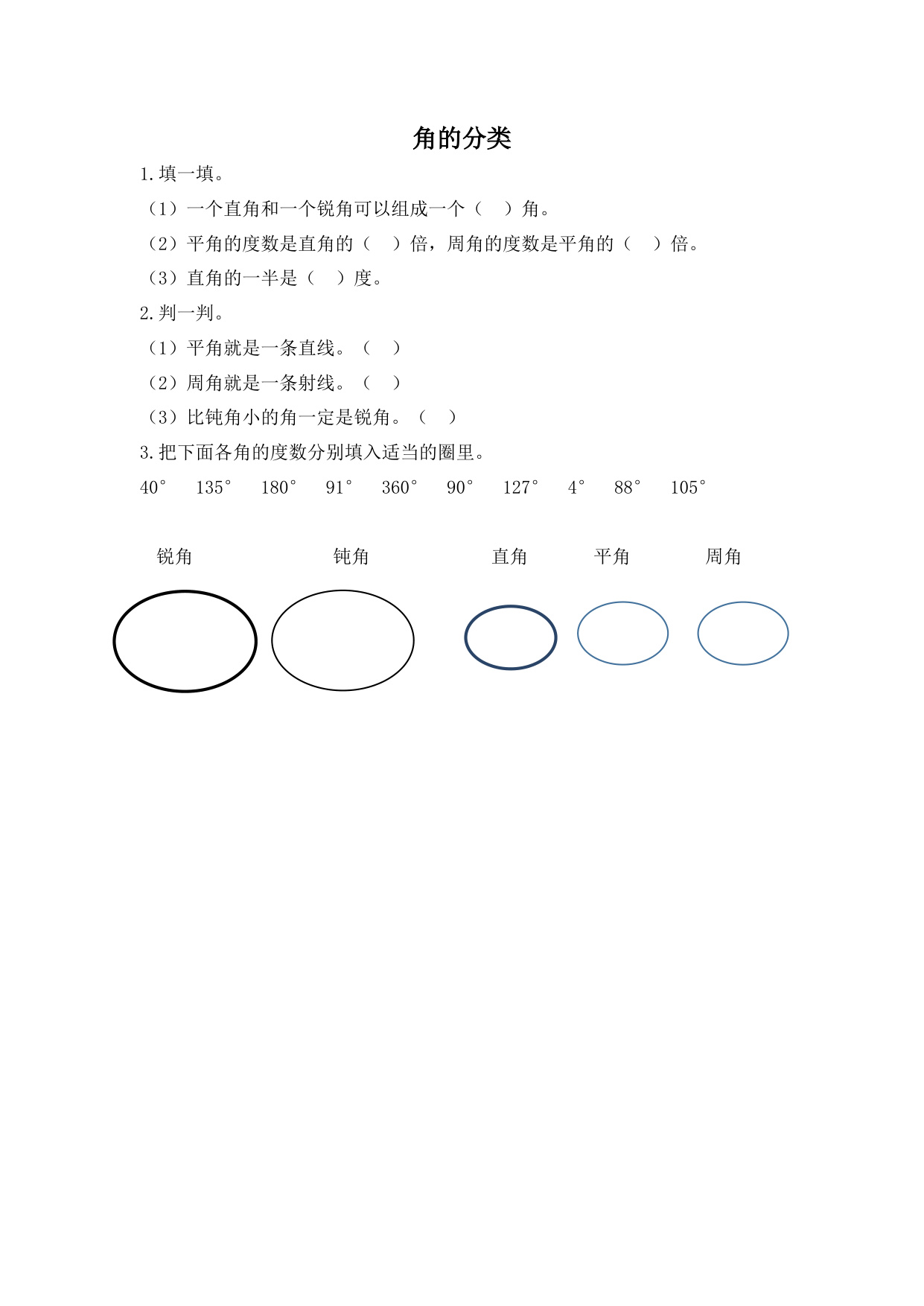 下一篇:数学人教版四上课时练3-3 角的分类与画角