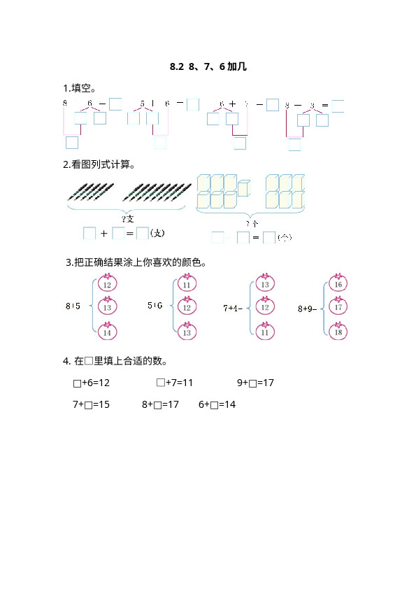 8-2 8、7、6加几-一年级上数学第八单元备选练习
