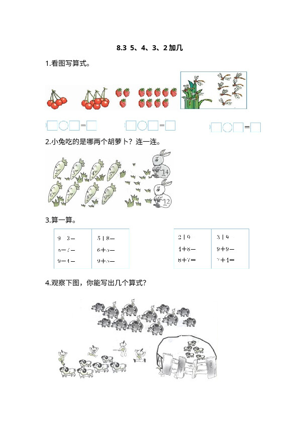8-3 5、4、3、2加几-一年级上数学第八单元备选练习