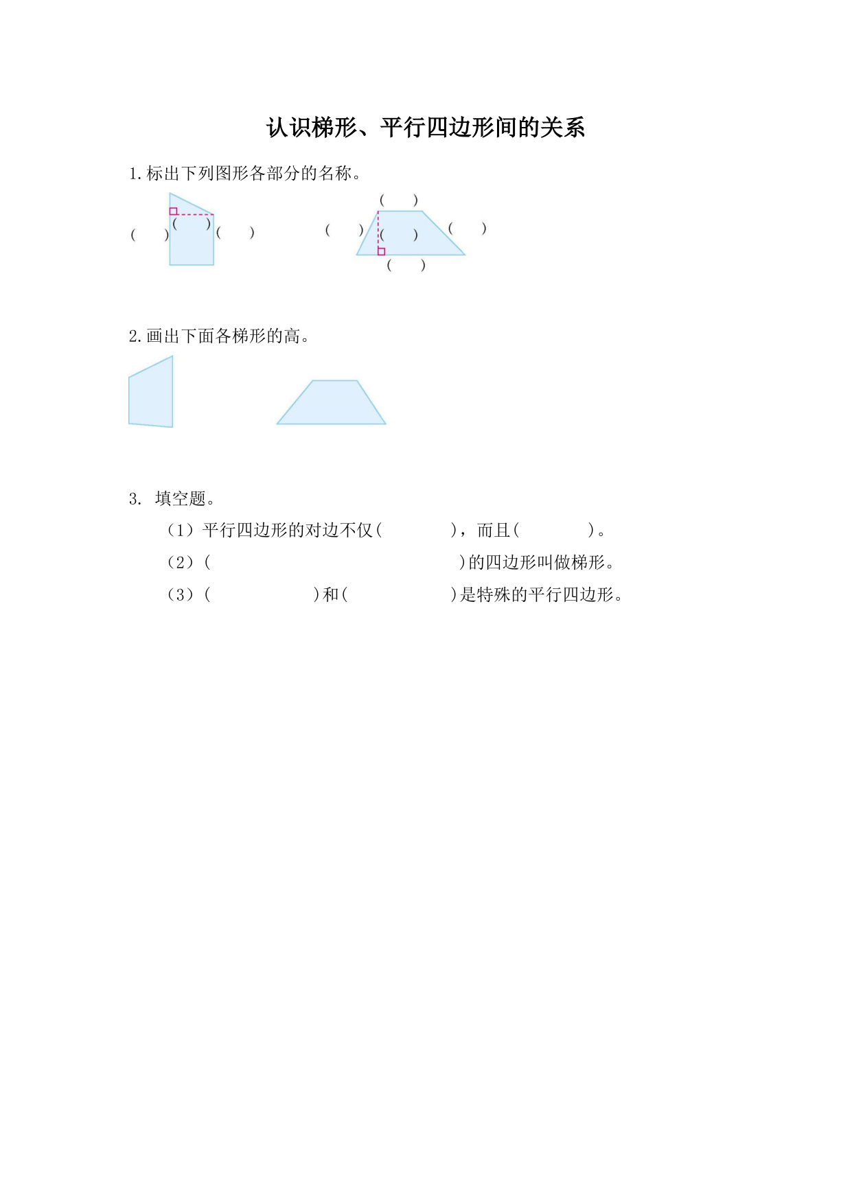 数学人教版四上课时练5-8 认识梯形、四边形间的关系