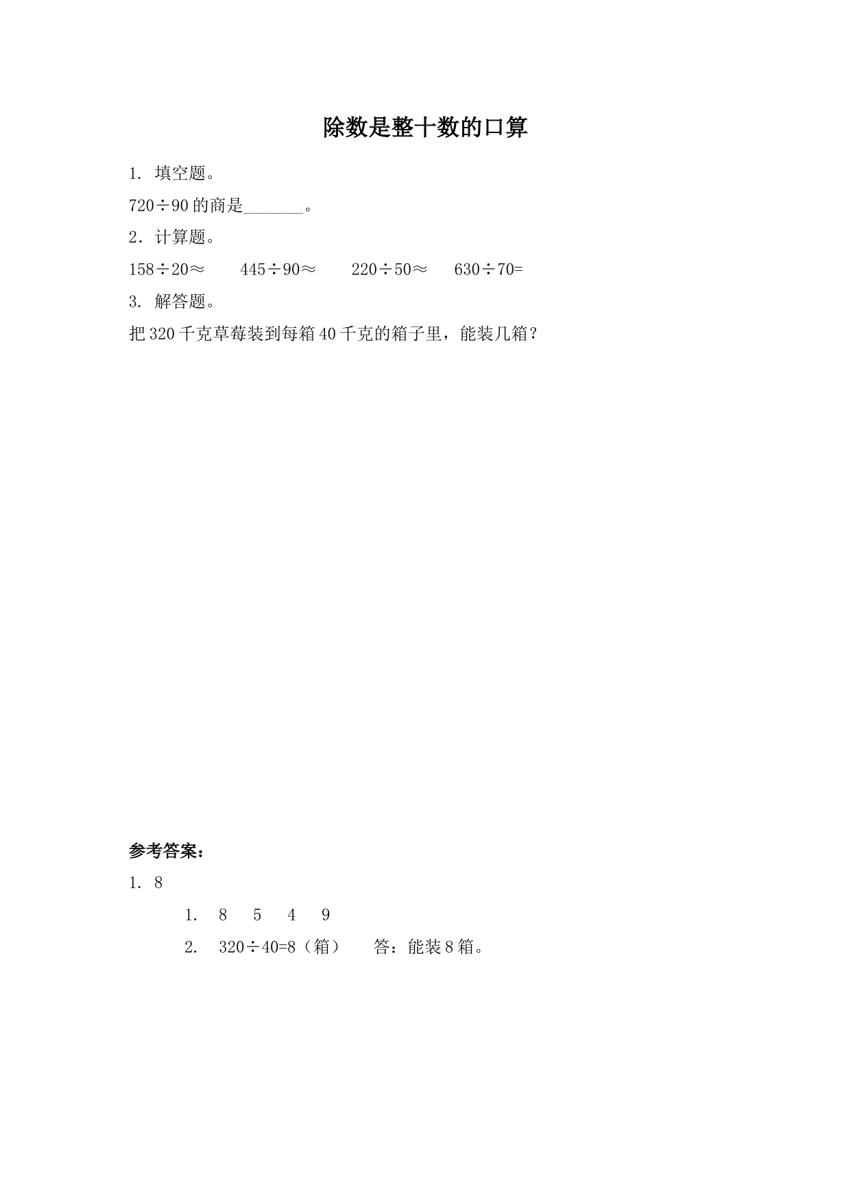 数学人教版四上课时练6-1-1 除数是整十数的口算