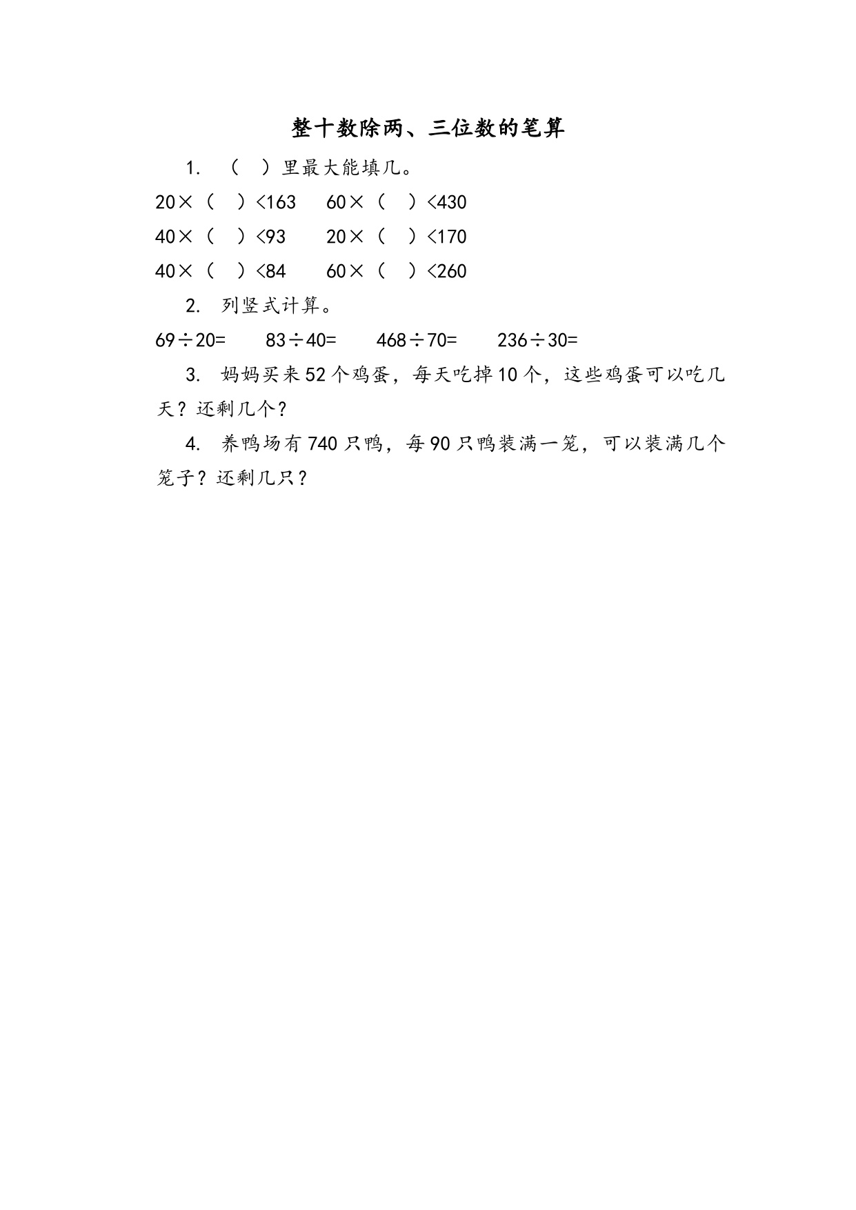 数学人教版四上课时练6-2-1 整十数除两、三位数的笔算