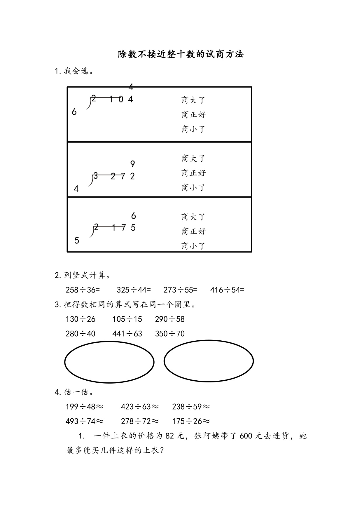数学人教版四上课时练6-2-6 除数不接近整十数的试商方法