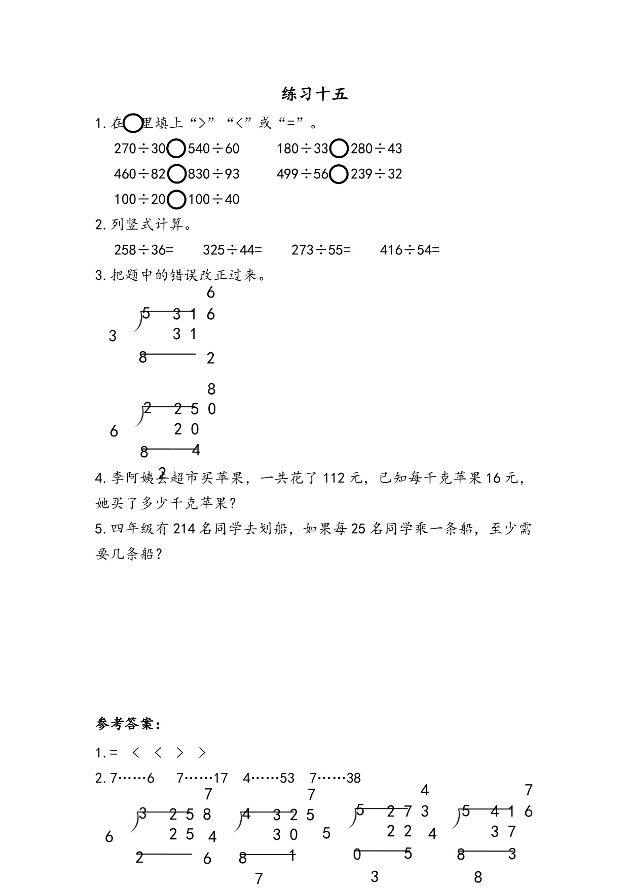 下一篇:数学人教版四上课时练6-2-8 商是两位数的除法