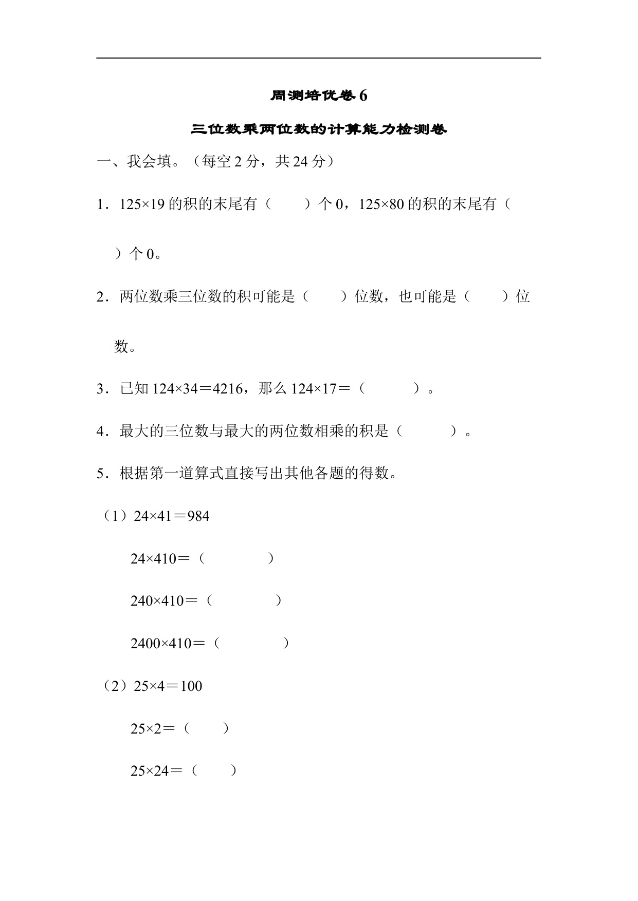 下一篇:人教版四年级数学上册单元测试试卷-第4单元-三位数乘两位数+答案-周测培优卷(7)