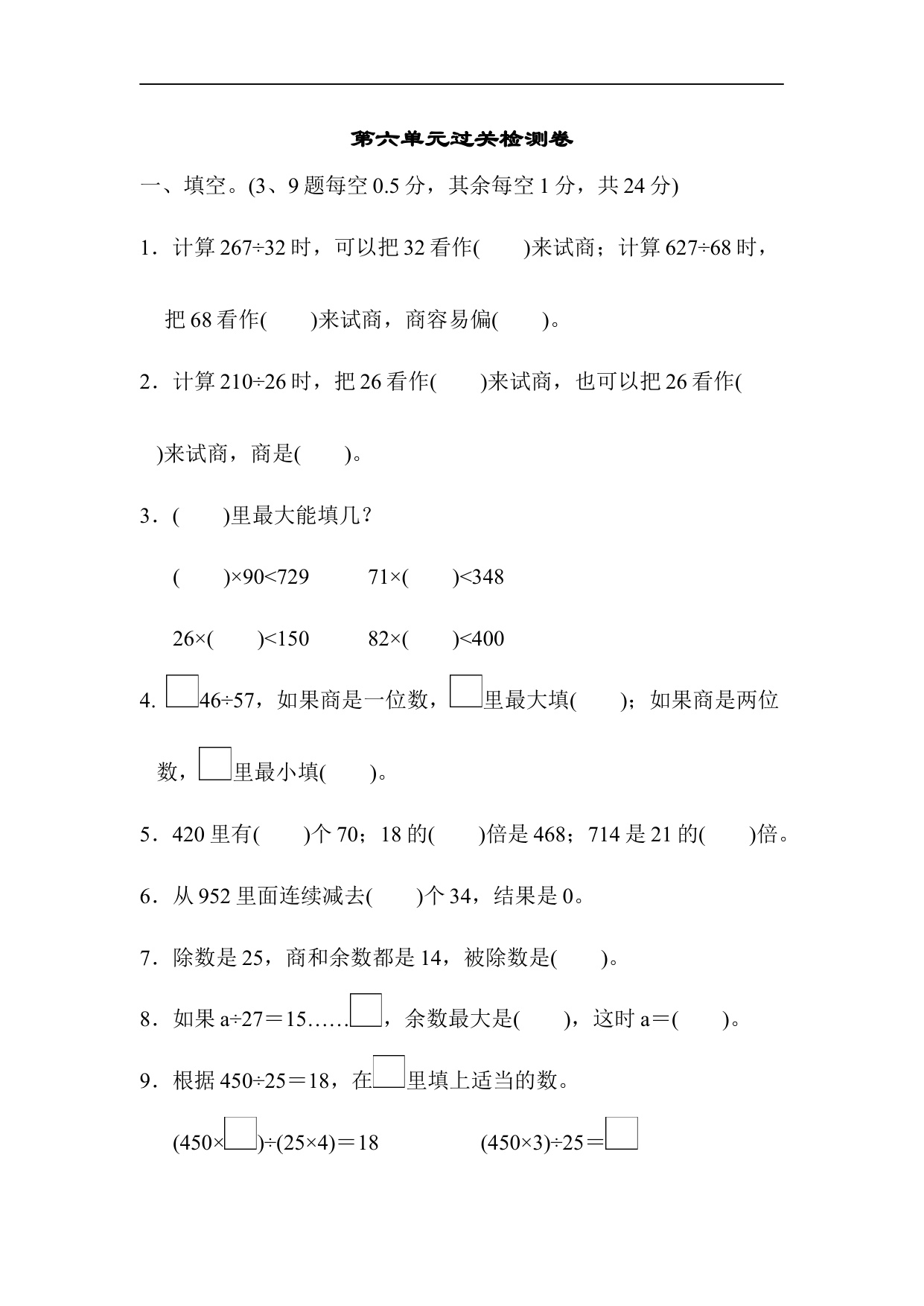 下一篇:人教版四年级数学上册单元测试试卷-第6单元-除数是两位数的除法+答案-第六单元过关测试卷