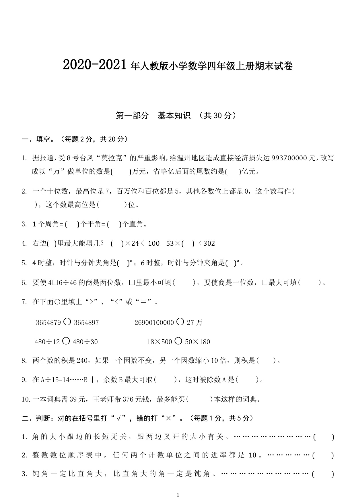 下一篇:2020-2021学年度人教版四年级上册数学期末试卷5