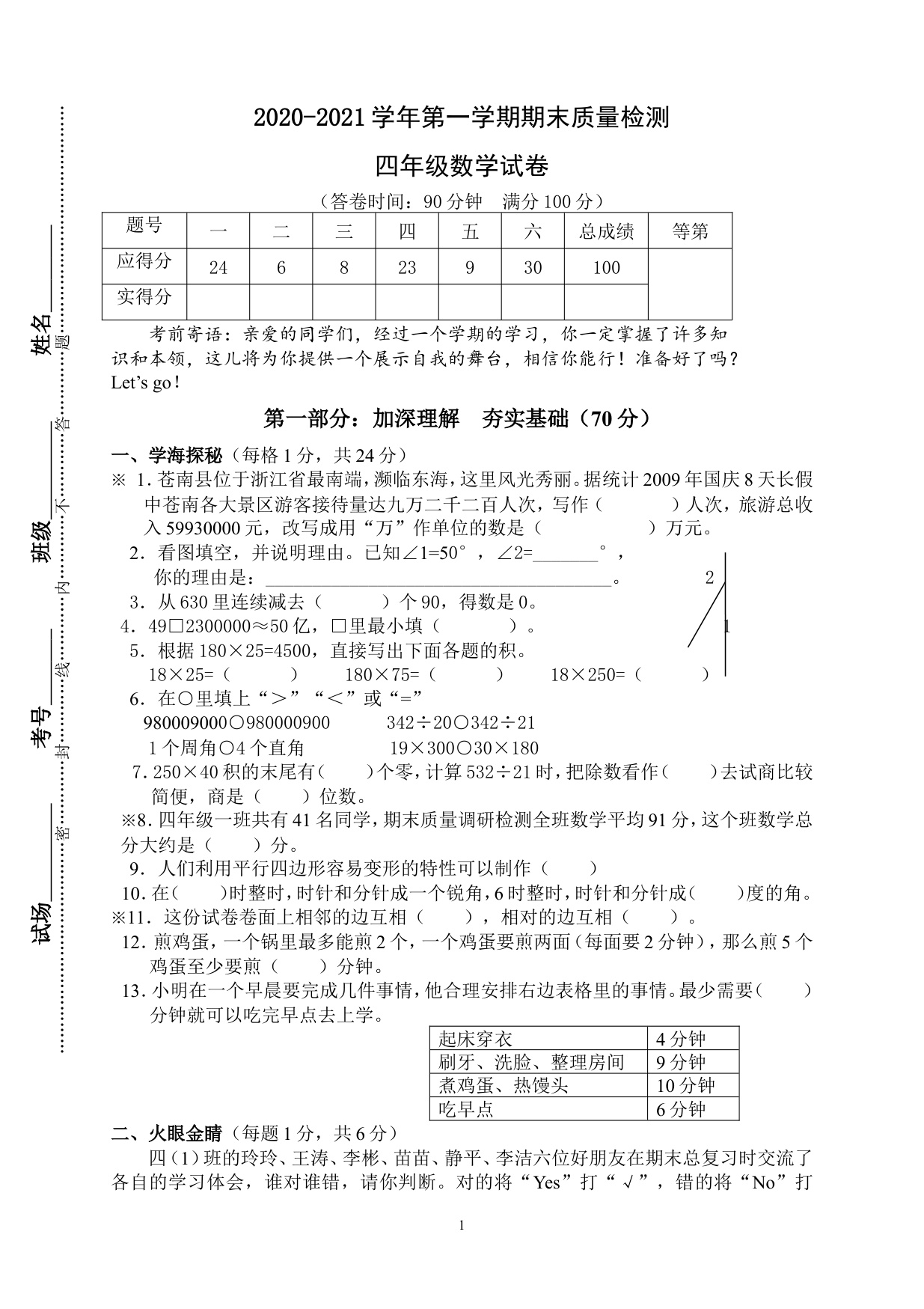 上一篇:2020-2021学年度人教版四年级上册数学期末试卷4