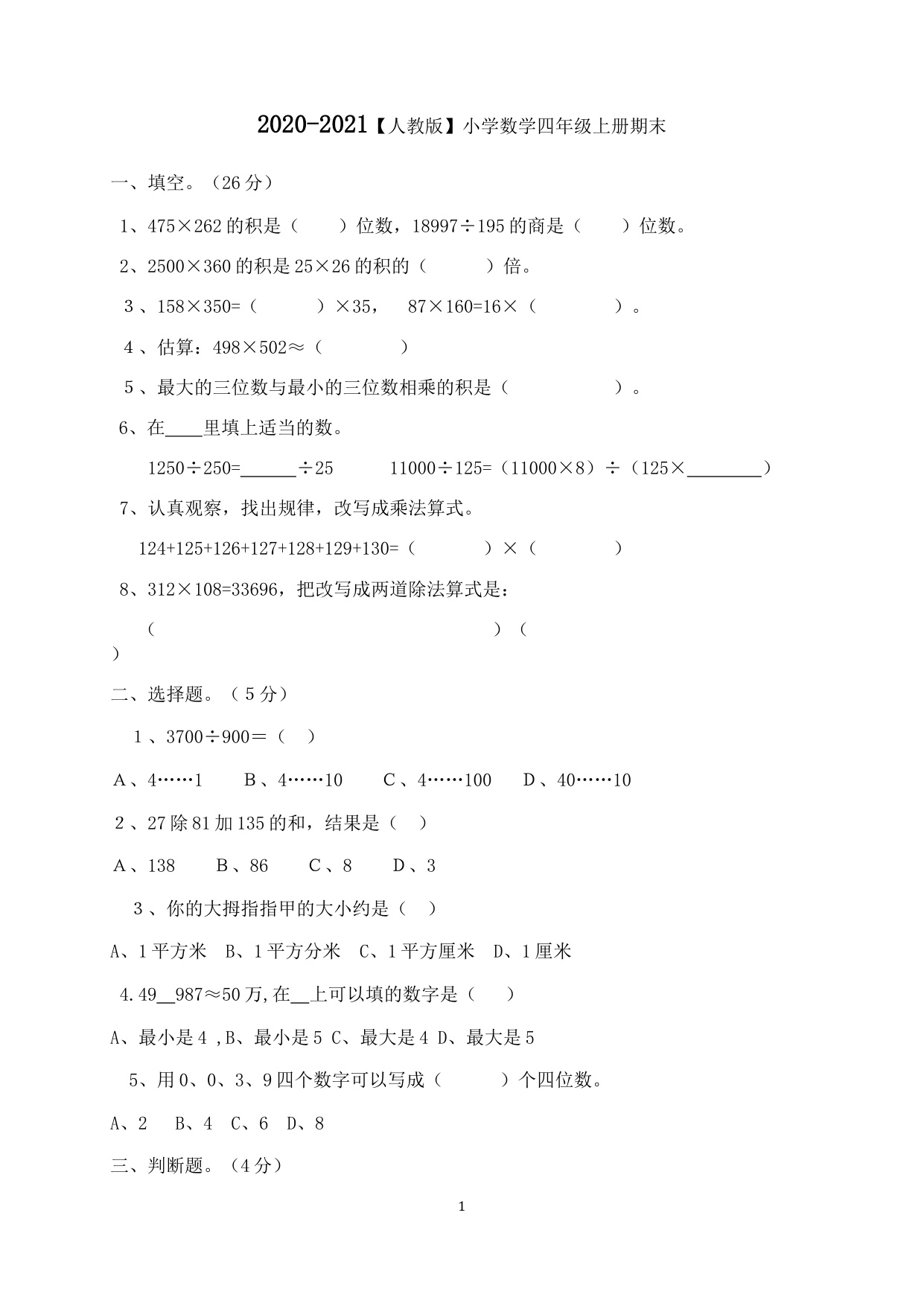 下一篇:2020-2021学年度人教版四年级上册数学期末试卷8