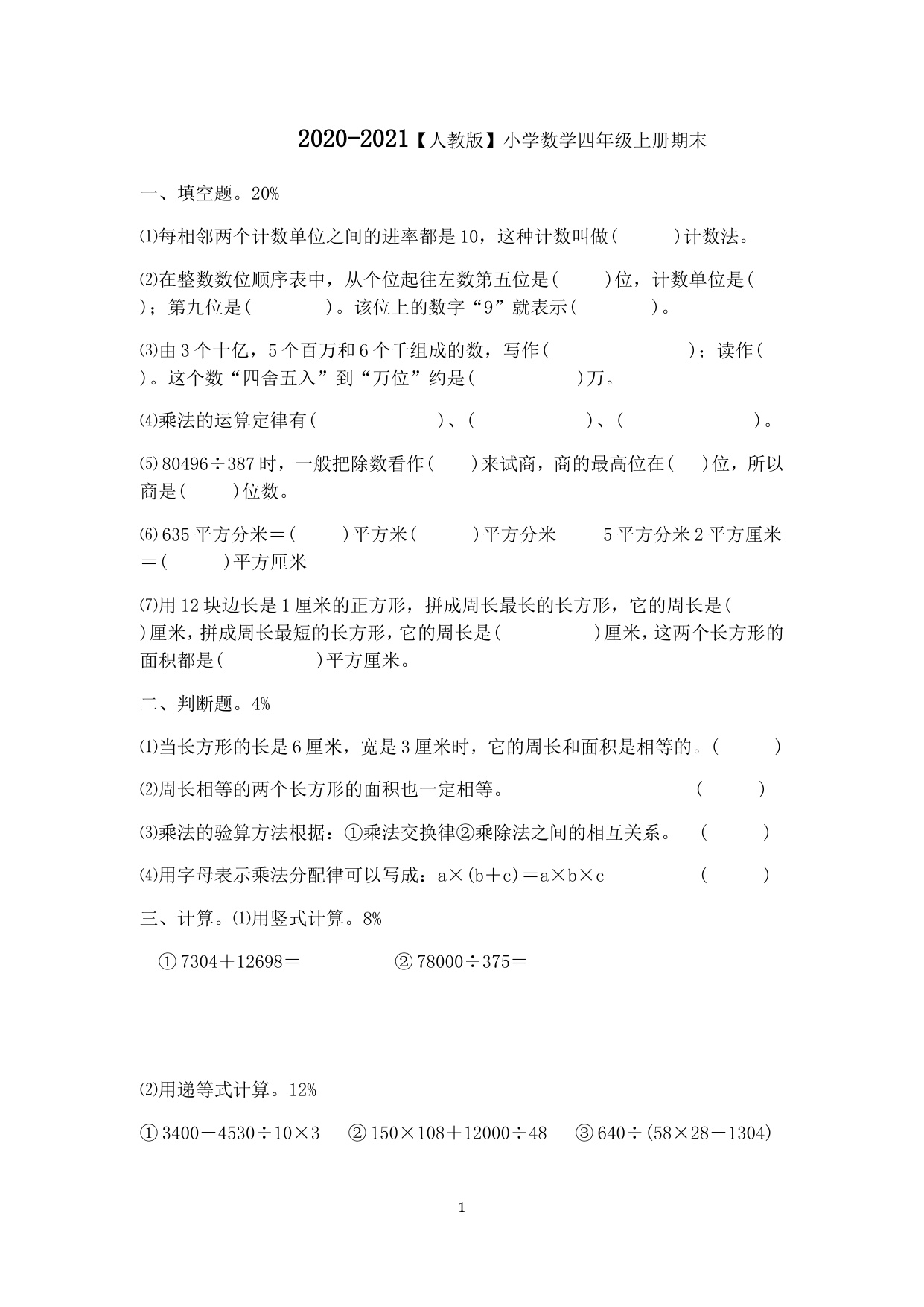 下一篇:2020-2021学年度人教版四年级上册数学期末试卷9