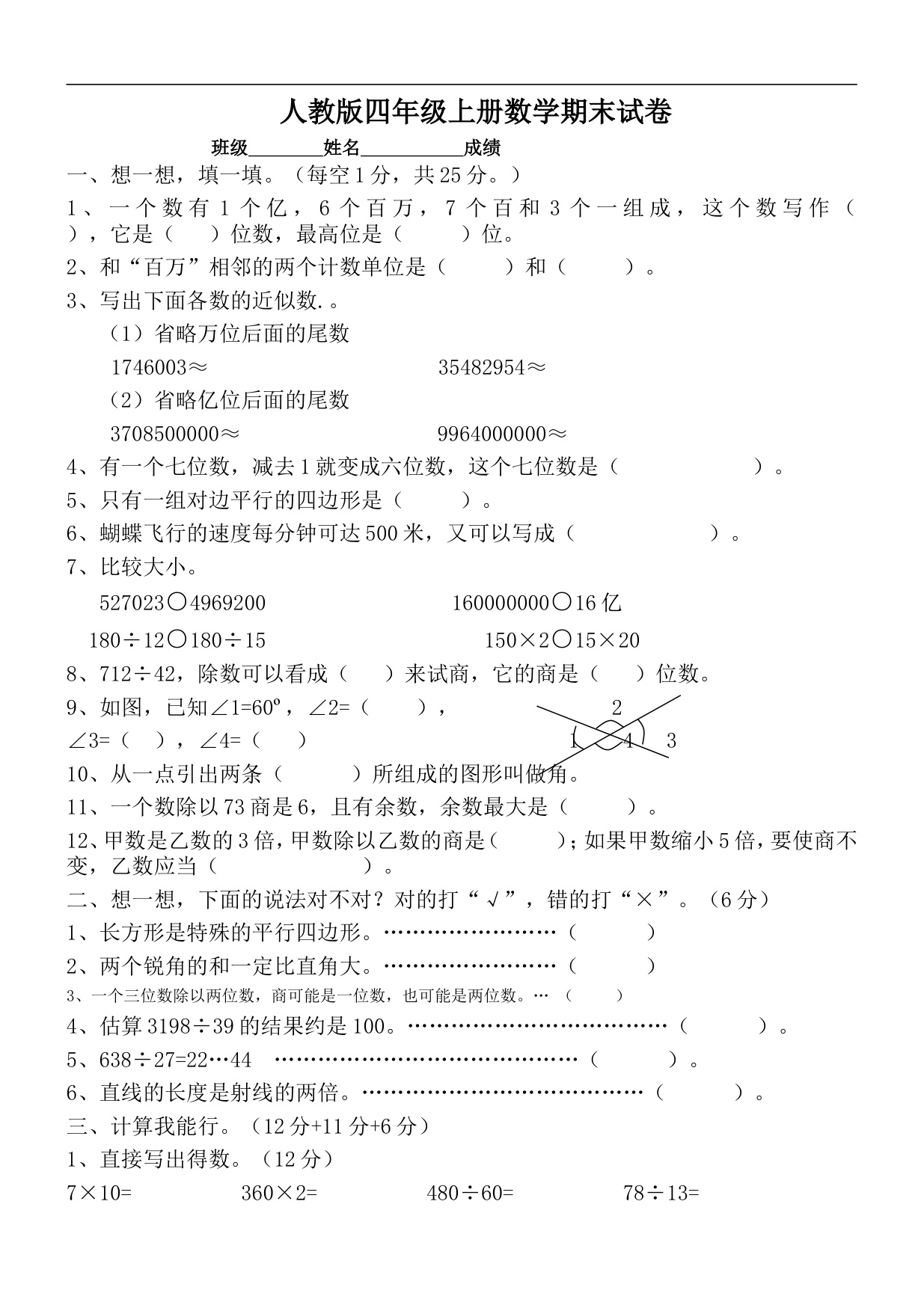 下一篇:人教版四年级上册数学期末试题10