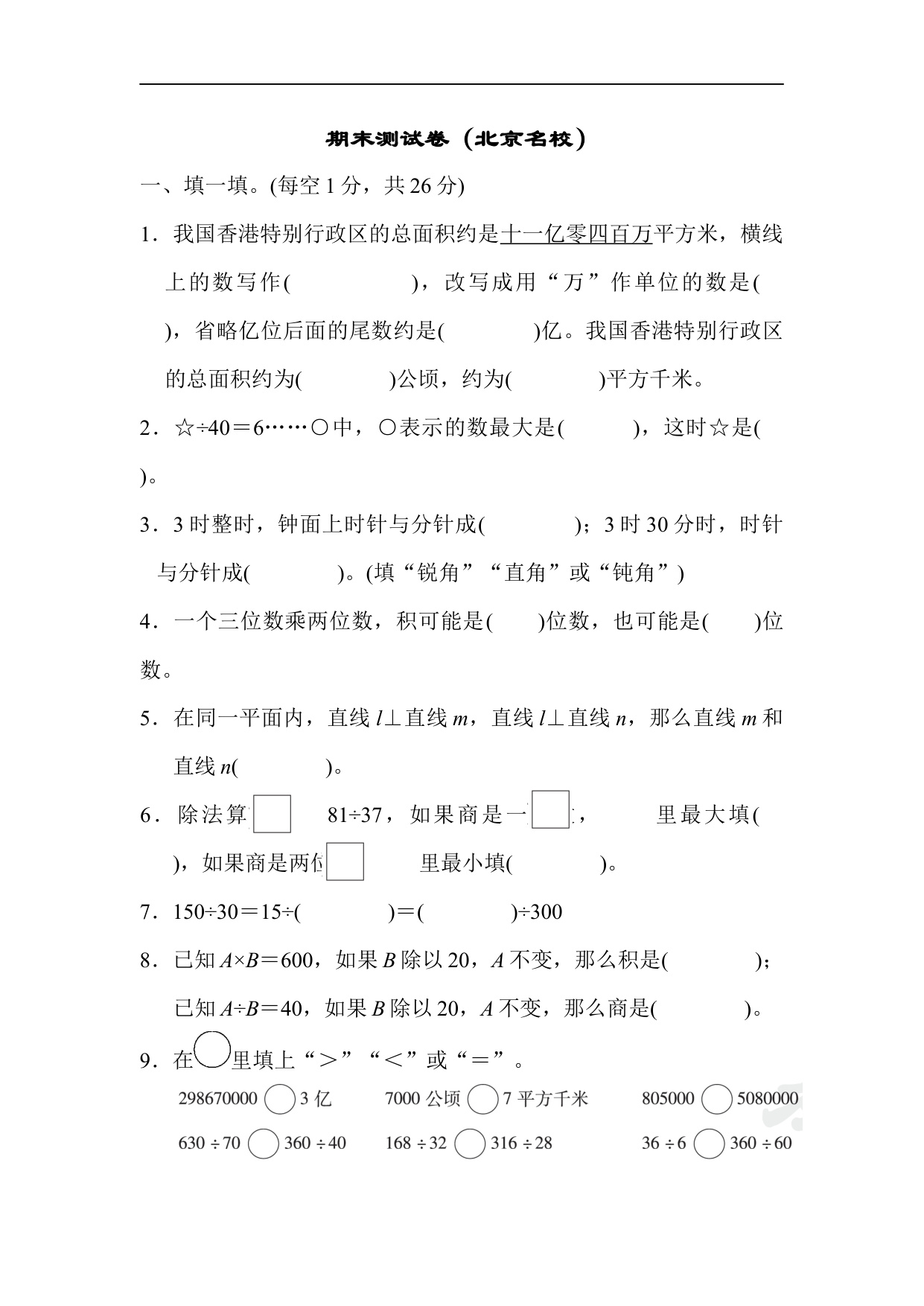 下一篇:人教版四年级数学上册(含答案)期末测试卷(北京名校)