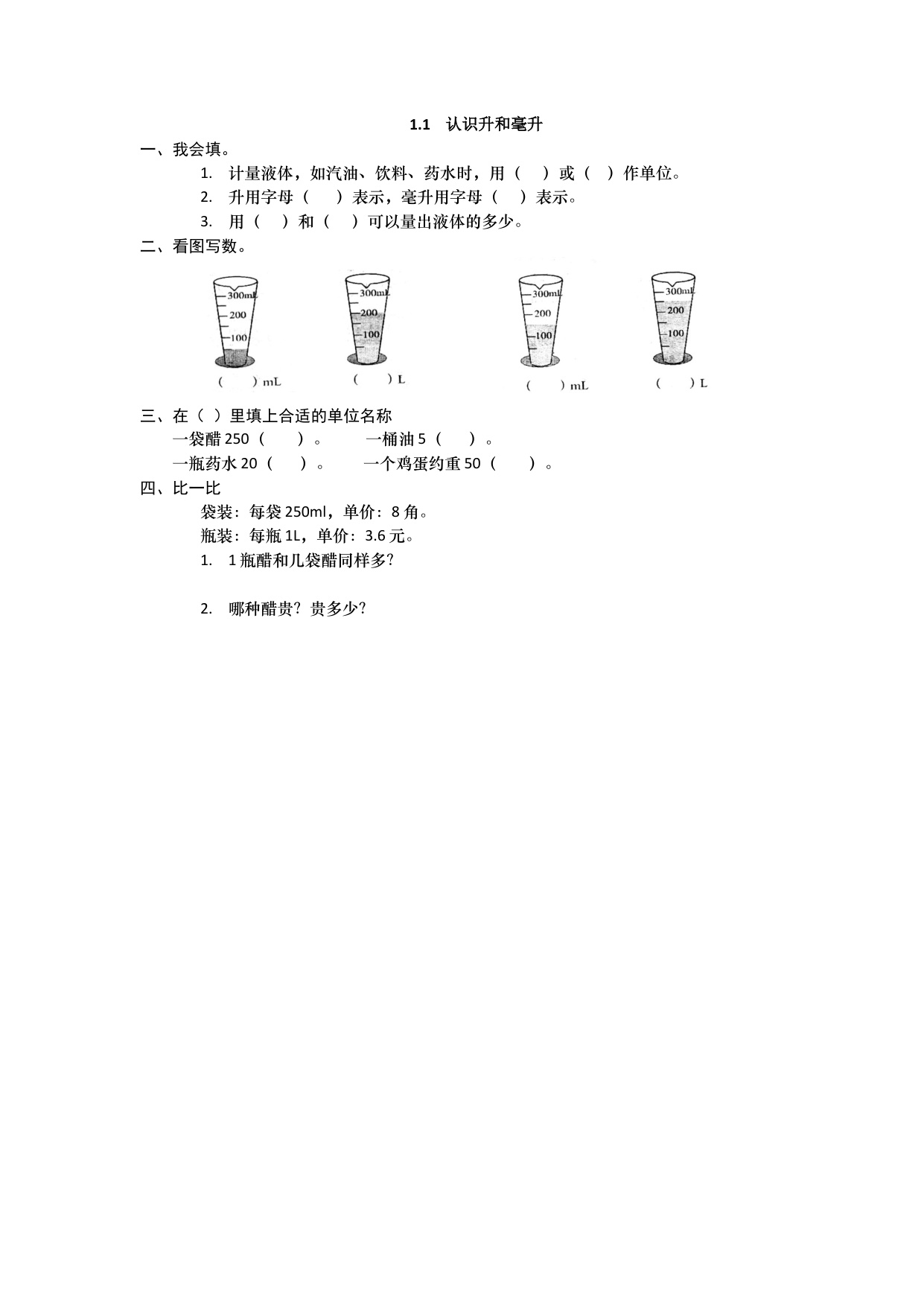 下一篇:冀教版数学四上课时练1-2 升和毫升的换算