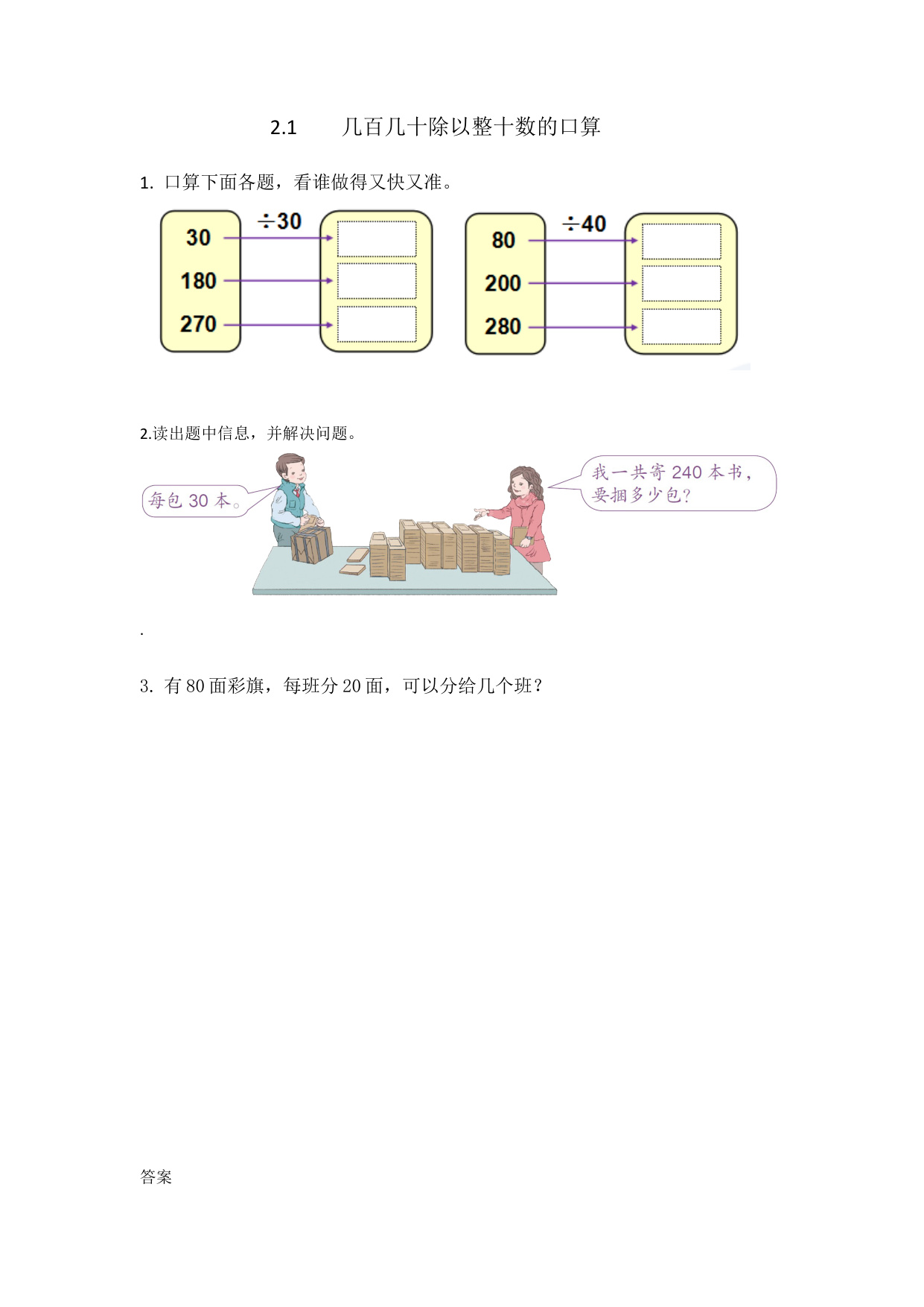 冀教版数学四上课时练2-1 几百几十除以整十数的口算