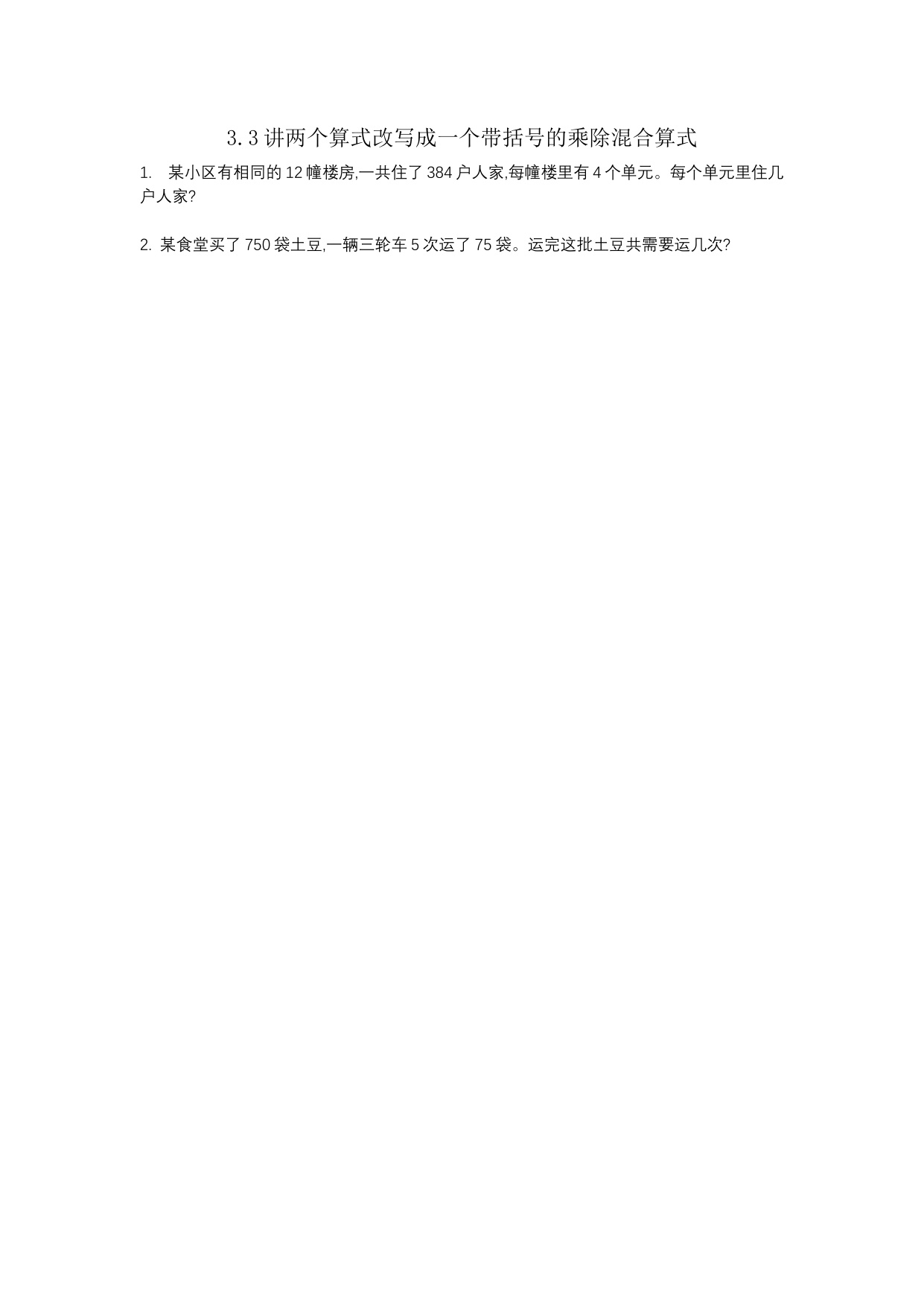 冀教版数学四上课时练3-3 将两个算式改写成一个带小括号的乘除混合算式 资料为Word格式,请下载后使用相应软件打开。
